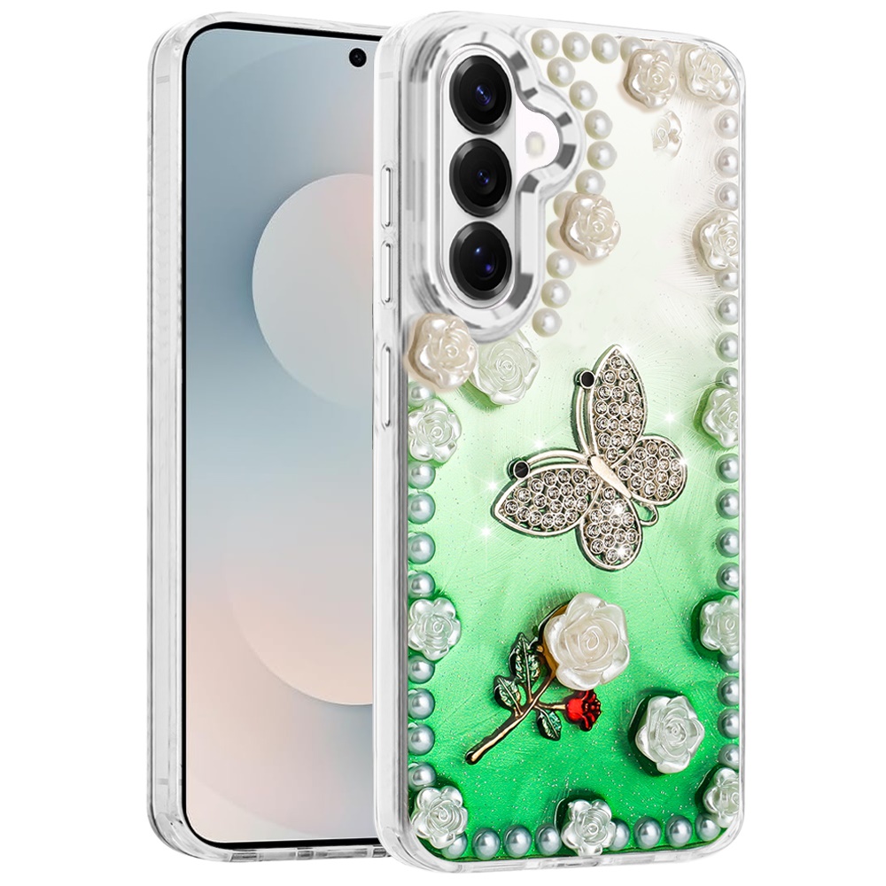 For Samsung s26 Pearls Epoxy Glitter Ornaments Design Chrome Edged Case - 6