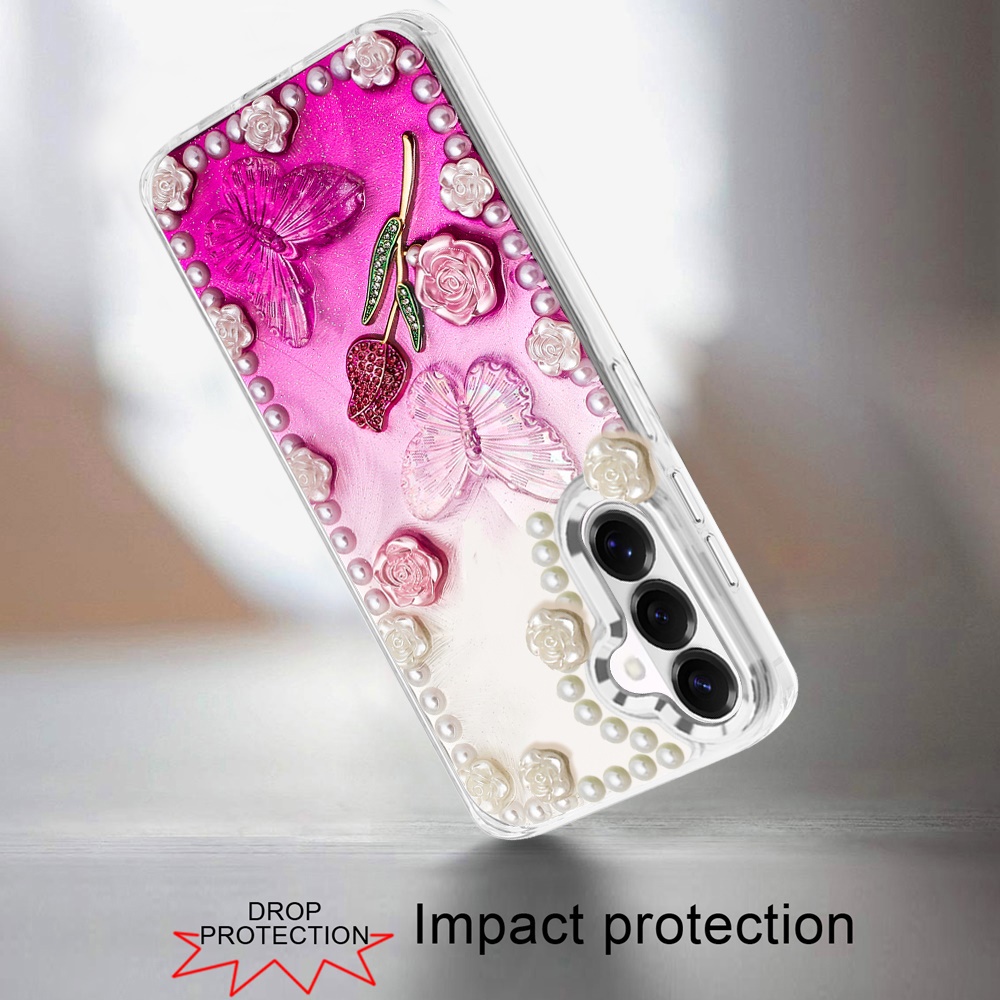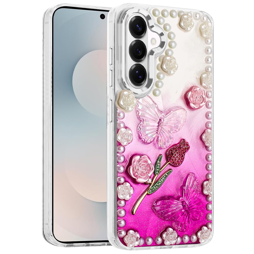 For Samsung s26 Pearls Epoxy Glitter Ornaments Design Chrome Edged Case - 7