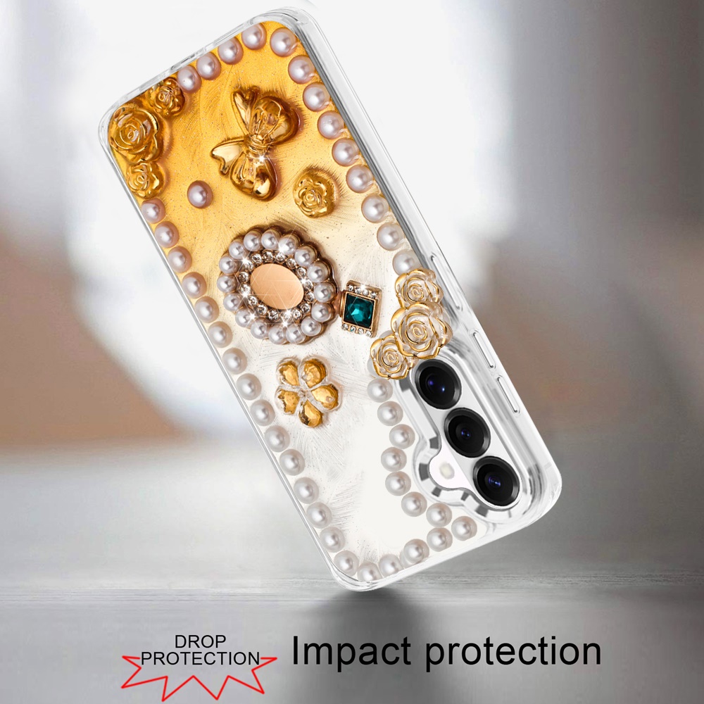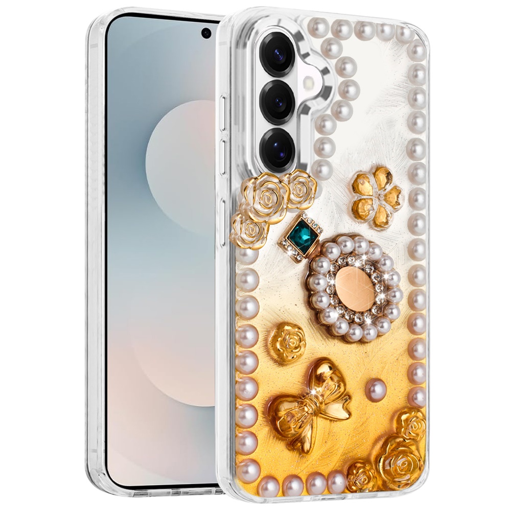 For Samsung s26 Pearls Epoxy Glitter Ornaments Design Chrome Edged Case - 8