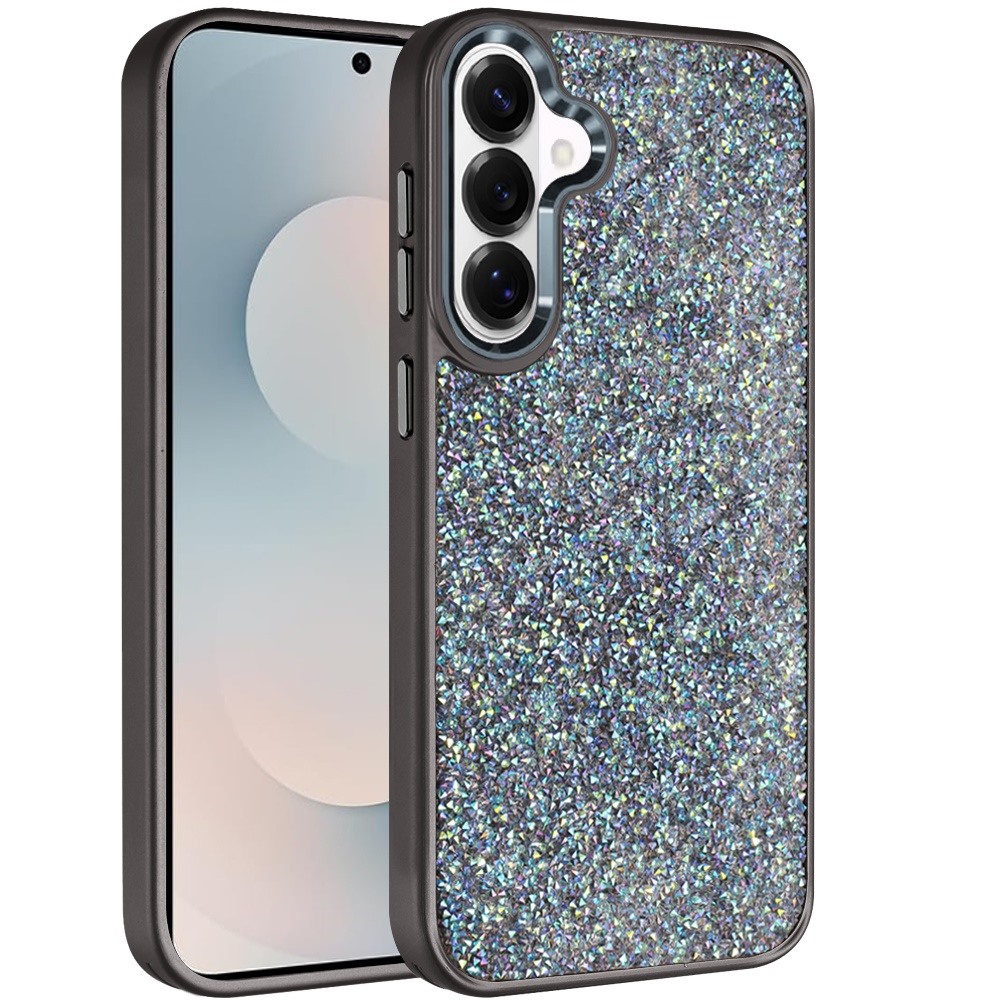 For Samsung s26 Crystal Glass Diamond with Metallic Buttons and Edges Hybrid Case - Black