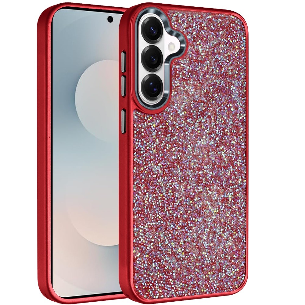 For Samsung s26 Crystal Glass Diamond with Metallic Buttons and Edges Hybrid Case - Red