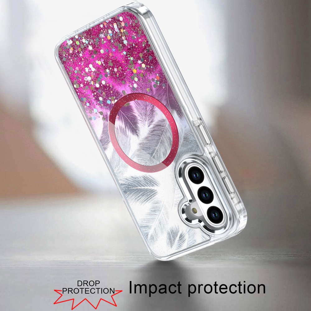 For Samsung s26 Epoxy Glitter Shimmer [Magnetic Circle] Hybrid Case - Hot Pink