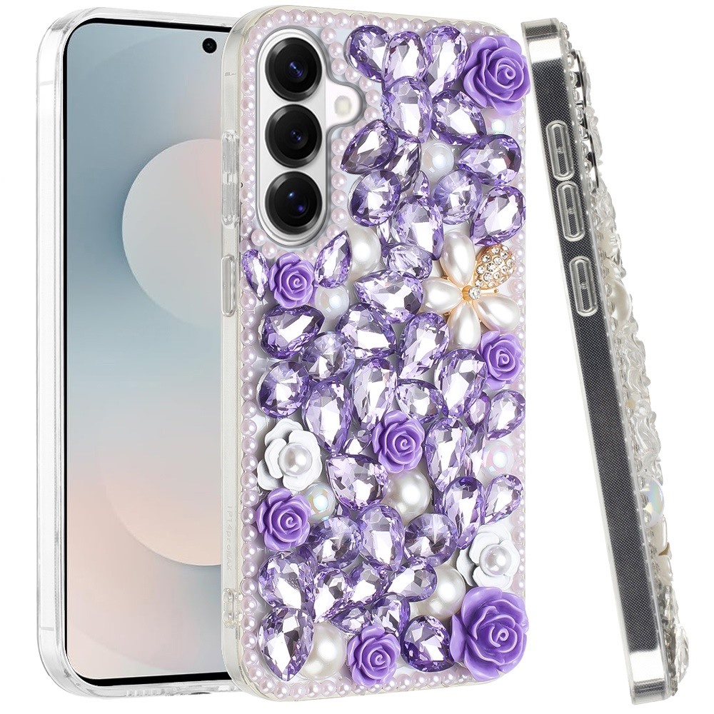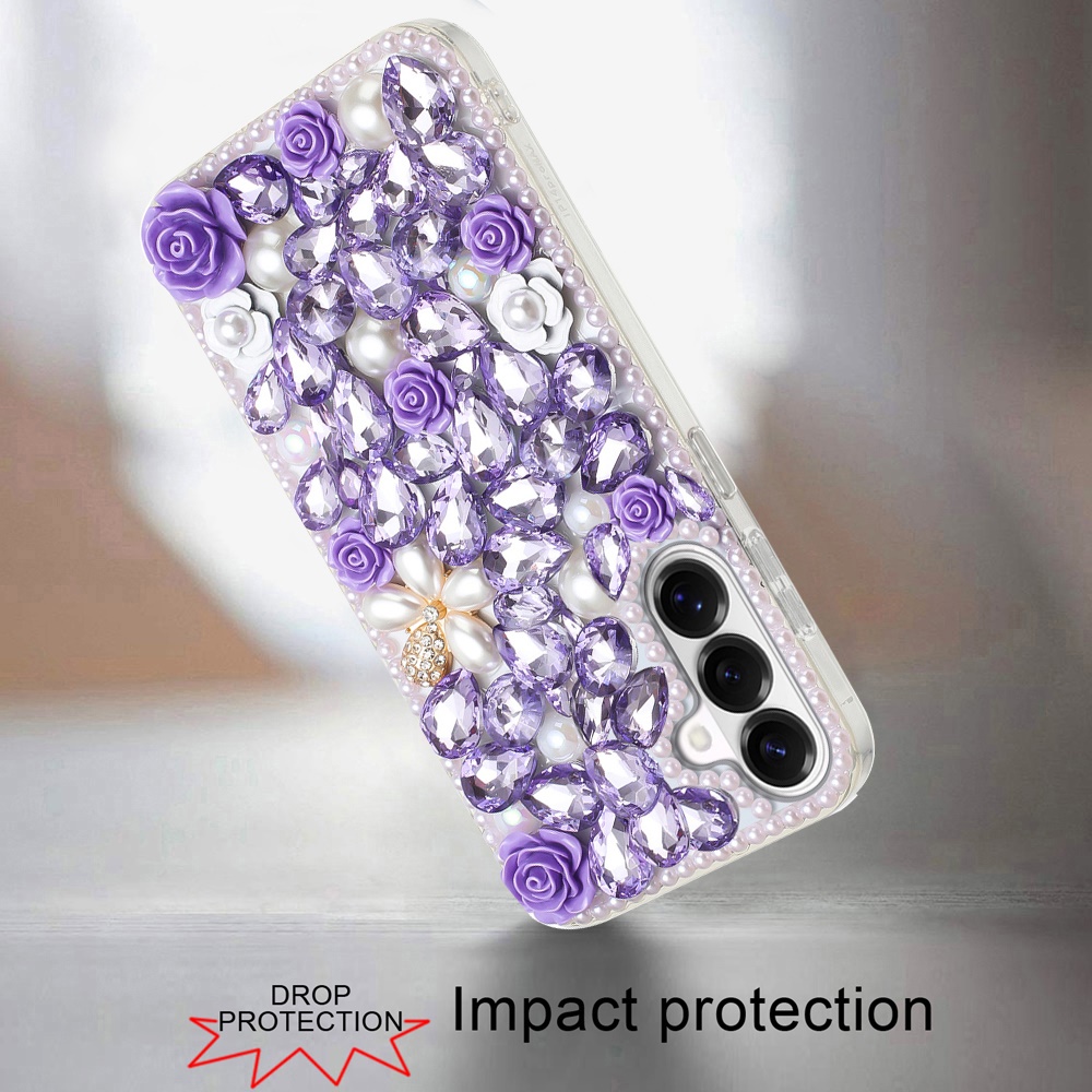 For Samsung s26 Edge Rose Flower Full Diamond Bling Stones - Purple