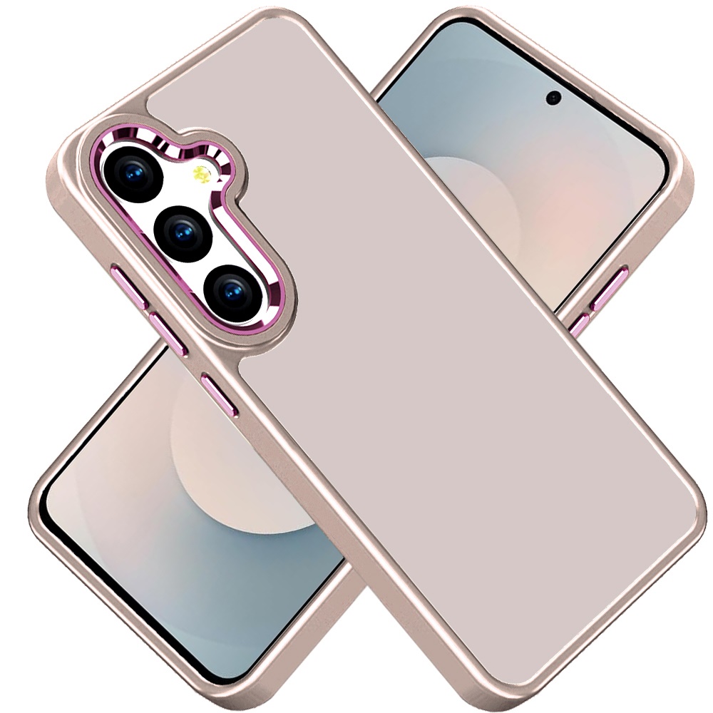 For Samsung s26 Edge Polished Oil Thick Acrylic Metal Button Hybrid Case Cover - Beige