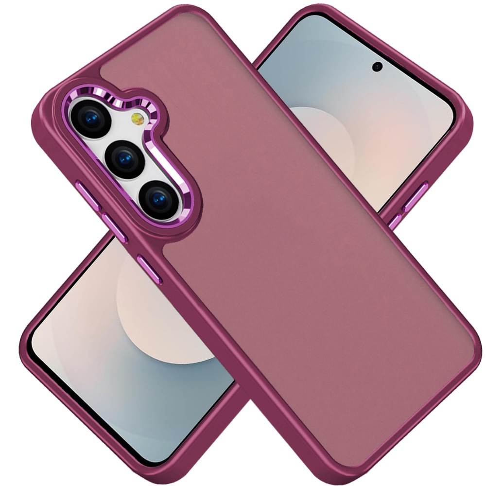 For Samsung s26 Edge Polished Oil Thick Acrylic Metal Button Hybrid Case Cover - Burgundy
