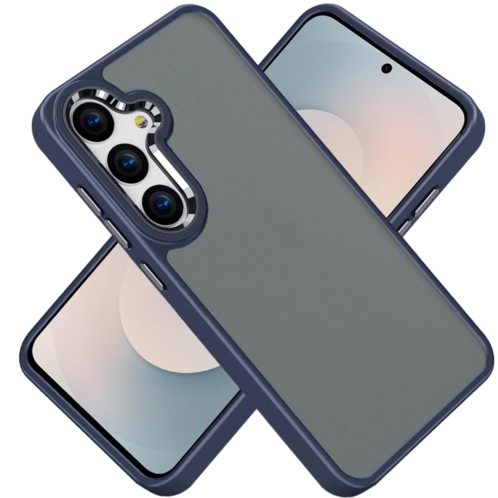 For Samsung s26 Edge Polished Oil Thick Acrylic Metal Button Hybrid Case Cover - Dark Blue