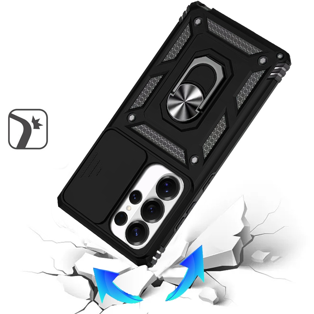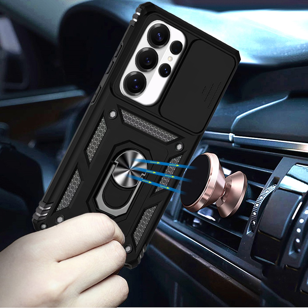 For Samsung s26 Ultra Well Protective Magentic Ring Stand Camera Protective Cover Case - Black