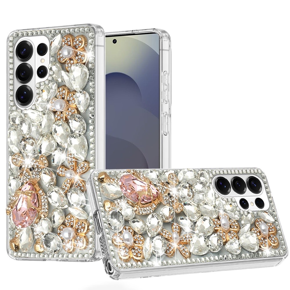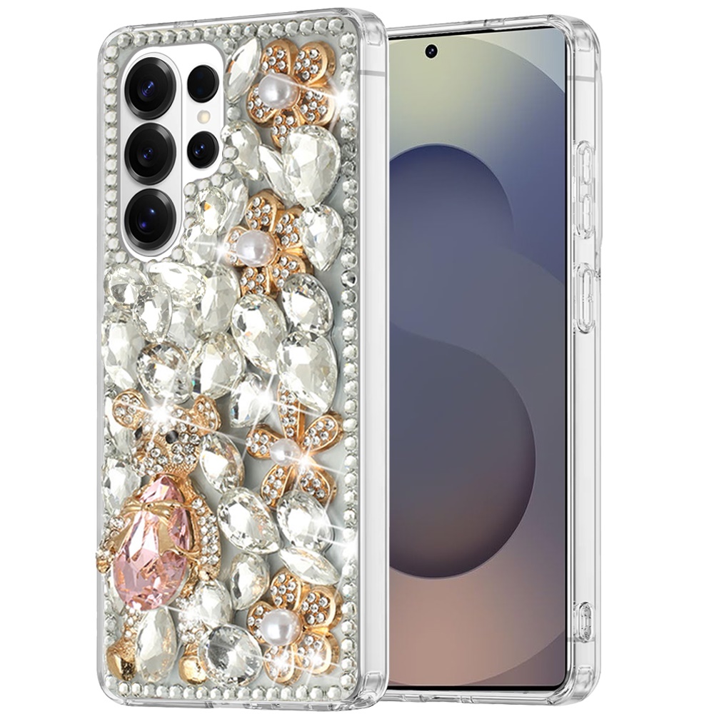 For Samsung s26 Ultra Full Diamond with Ornaments Case Cover - Silver Swan Crown Pearl