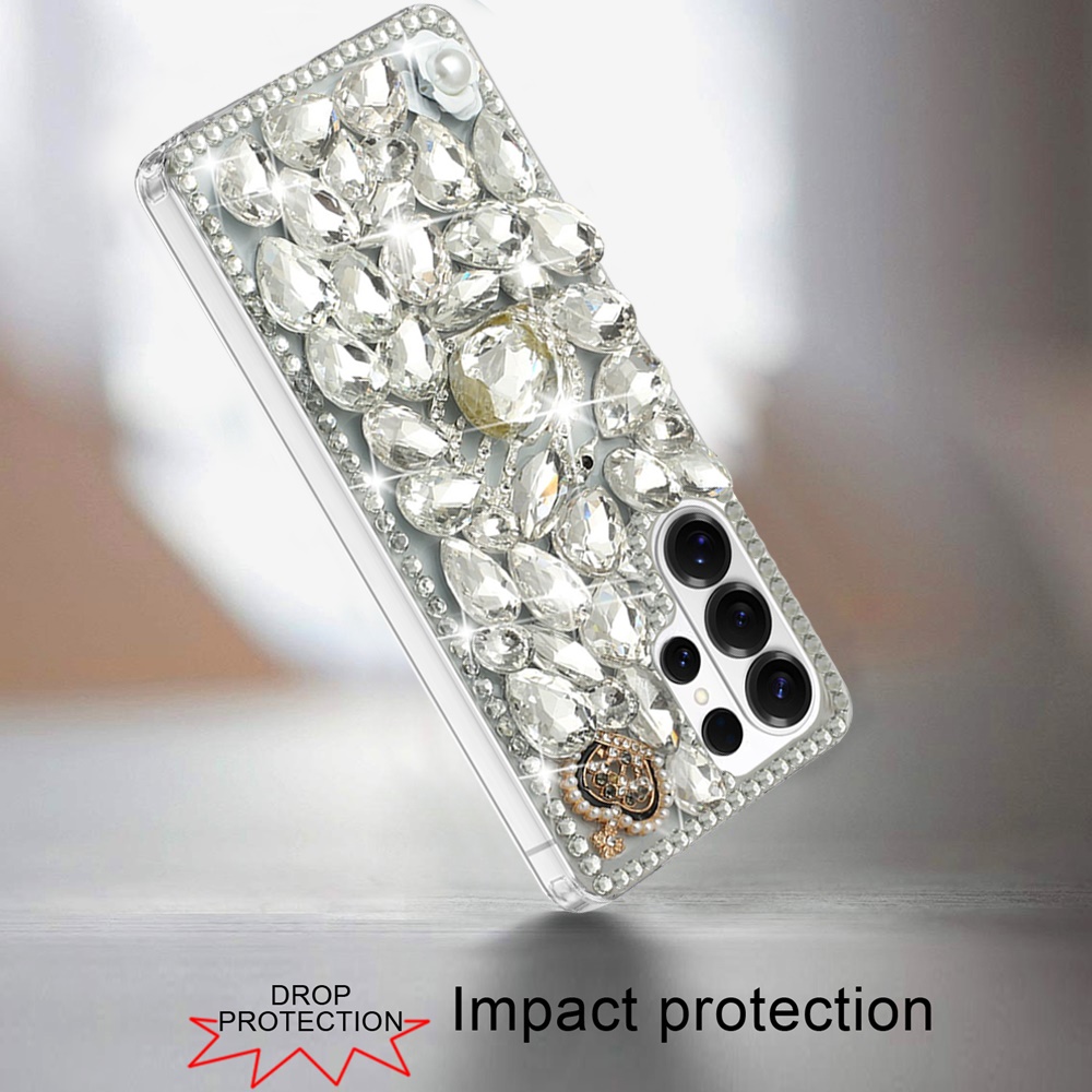For Samsung s26 Ultra Full Diamond with Ornaments Case Cover - Silver Panda Floral