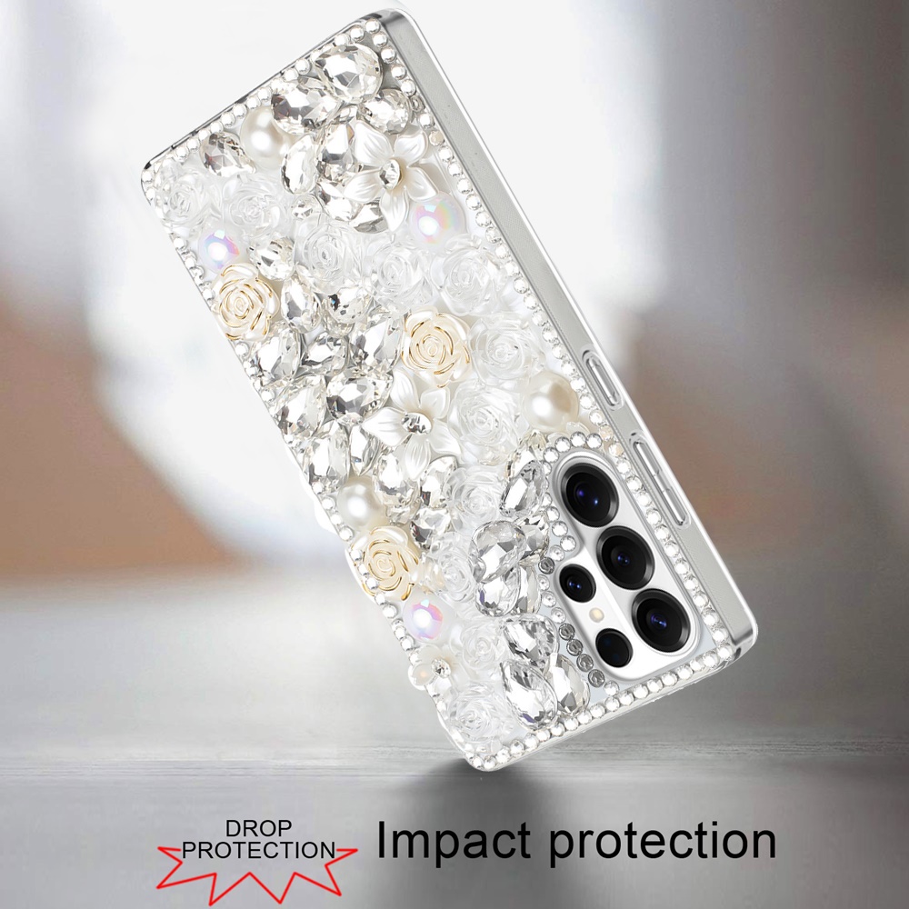 For Samsung s26 Ultra Rose Flower Full Diamond Bling Stones - Clear