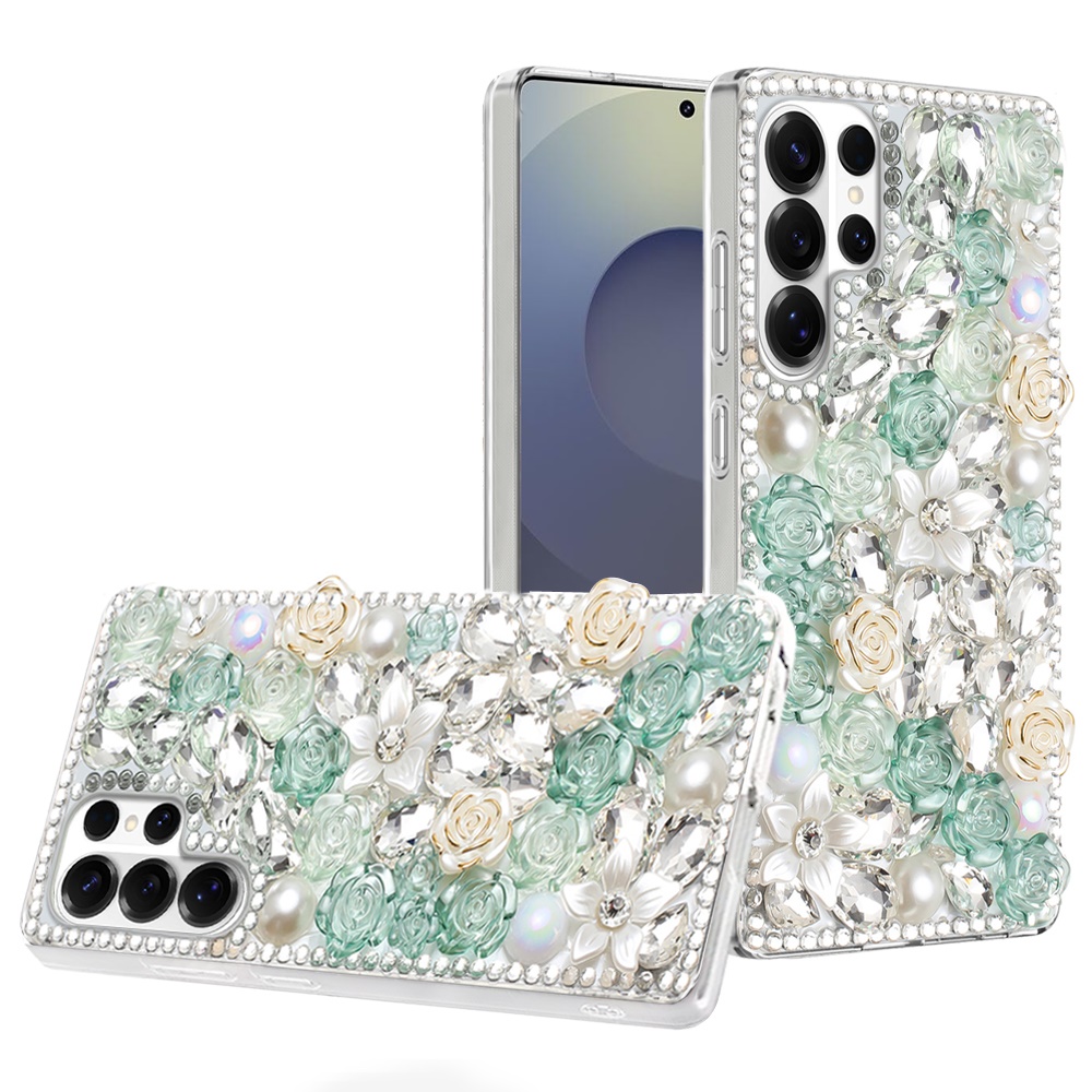 For Samsung s26 Ultra Rose Flower Full Diamond Bling Stones - Green