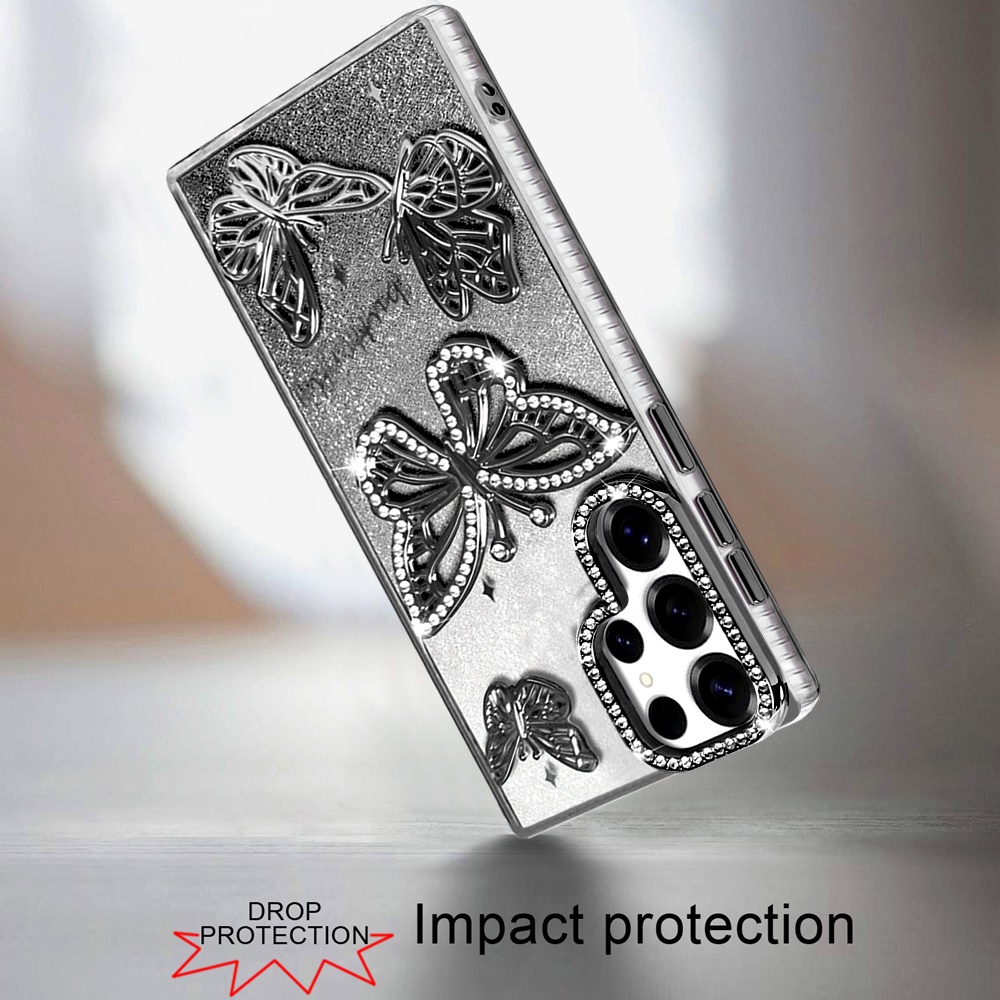 For Samsung s26 Ultra Butterfly Freedom Shimmer Glitter Thick TPU Case Cover - Black
