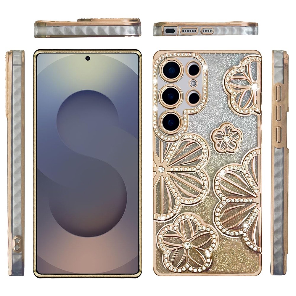 For Samsung s26 Ultra Shimmer Glitter Floral Design Thick TPU Case Cover - Gold
