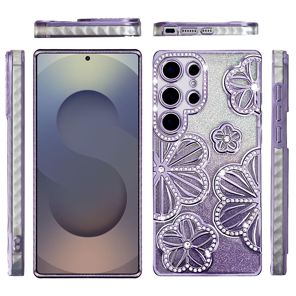 For Samsung s26 Ultra Shimmer Glitter Floral Design Thick TPU Case Cover - Purple