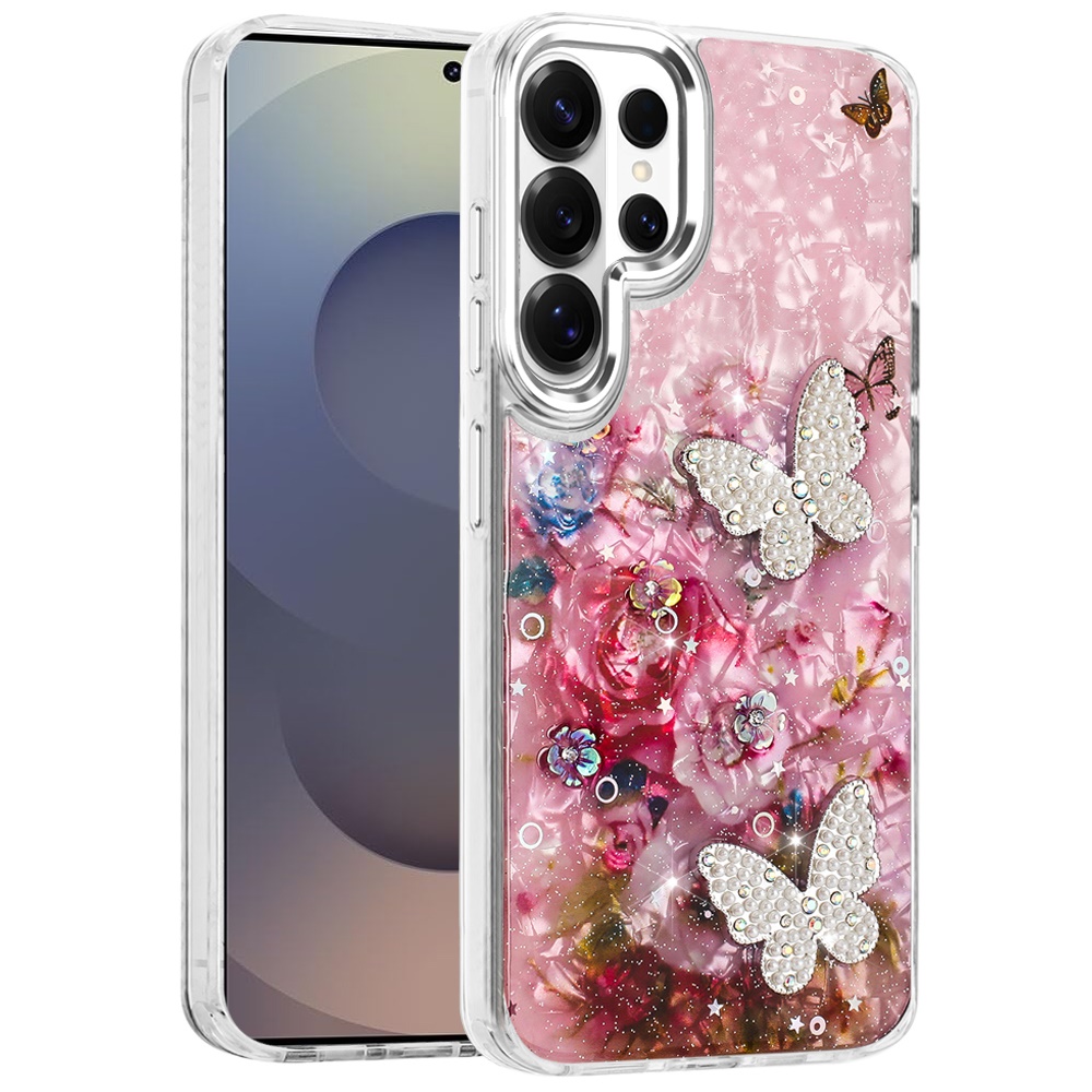 For Samsung s26 Ultra Epoxy Glitter Butterfly Ornaments Design HQ Metal Buttons Hybrid - 2