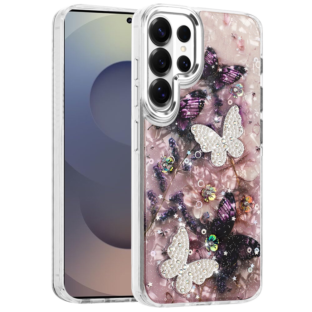 For Samsung s26 Ultra Epoxy Glitter Butterfly Ornaments Design HQ Metal Buttons Hybrid - 5