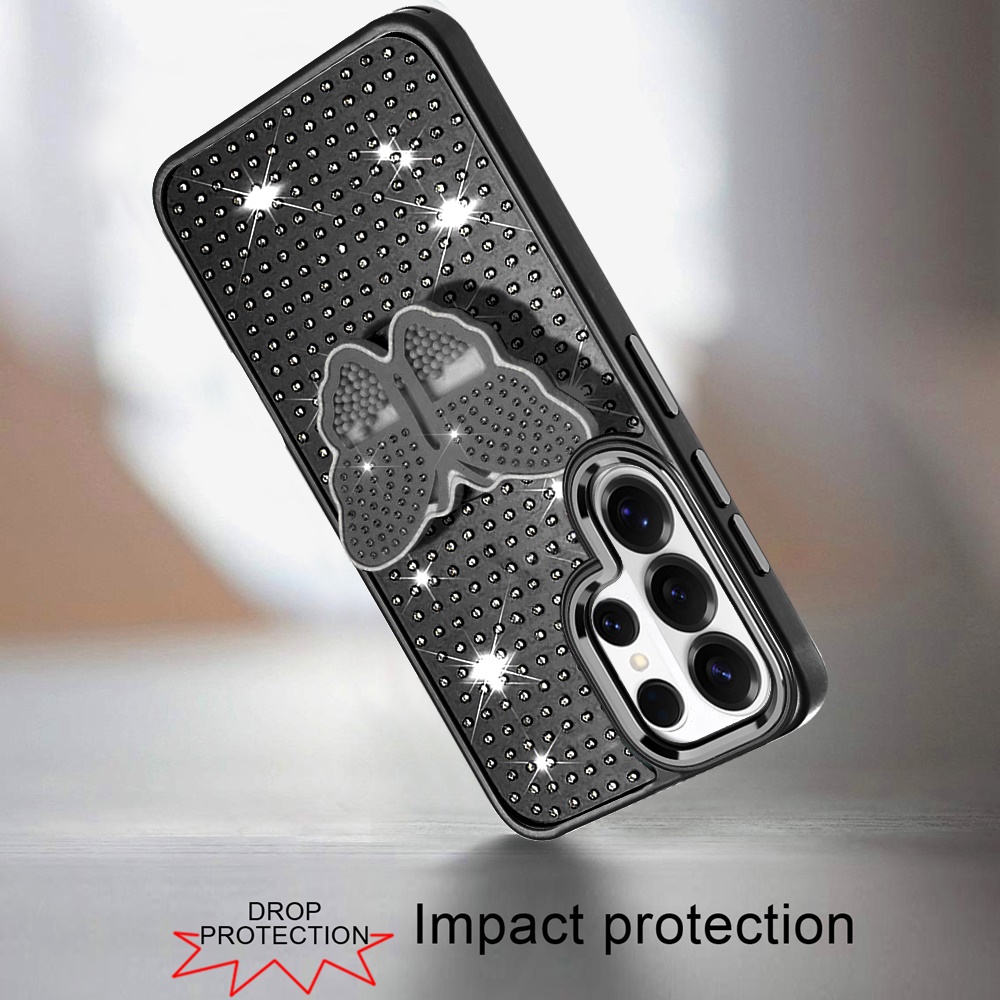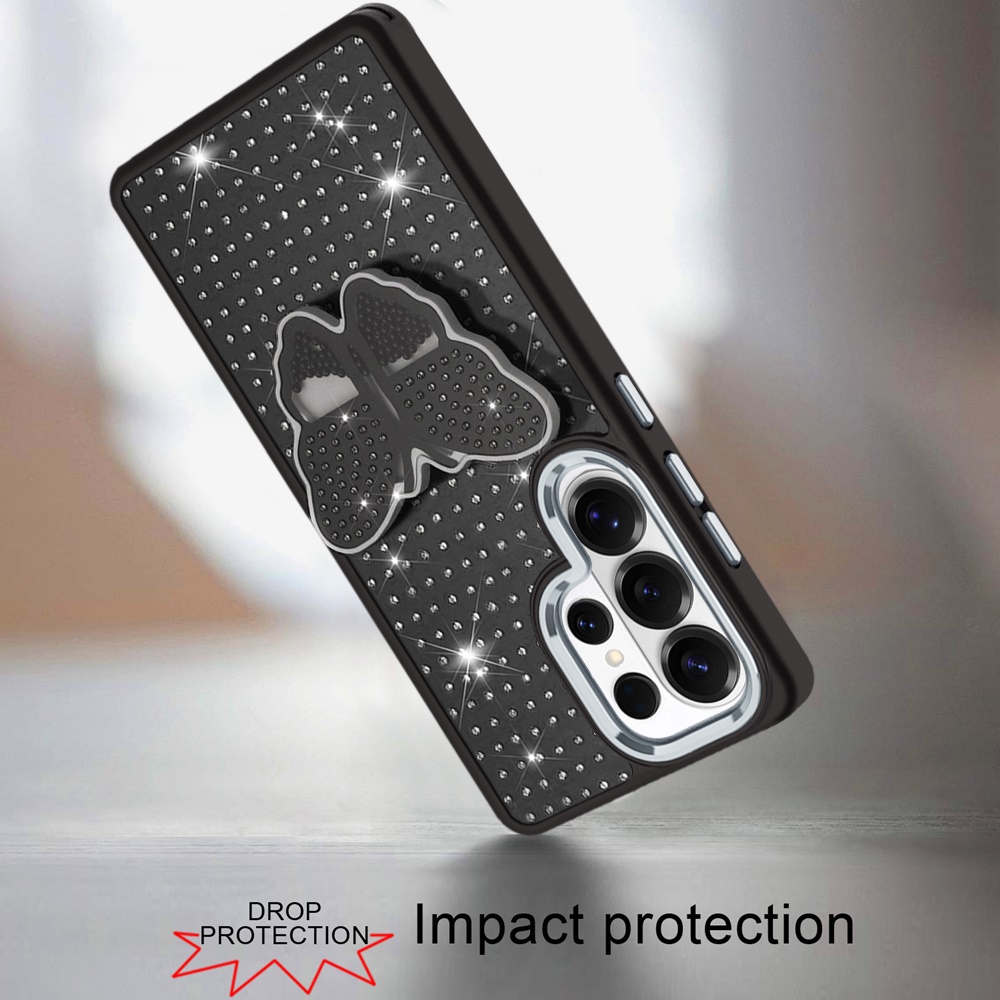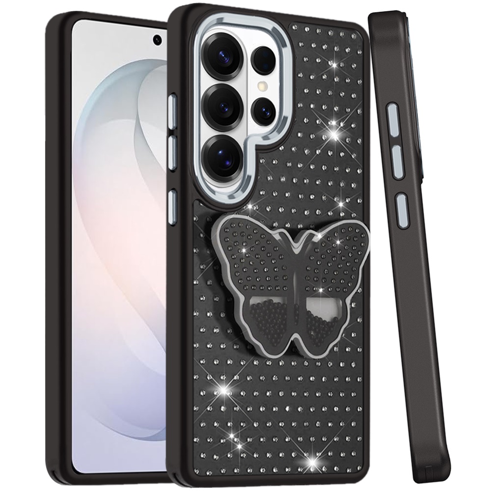 For Samsung s26 Ultra Butterfly Moveable Grip Stand With Small Diamonds Meta Buttons HQ Hybrid - Black