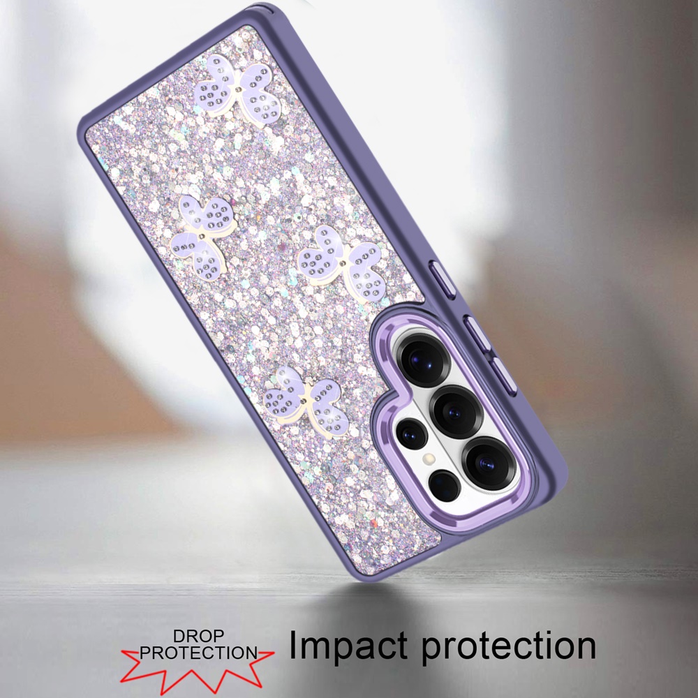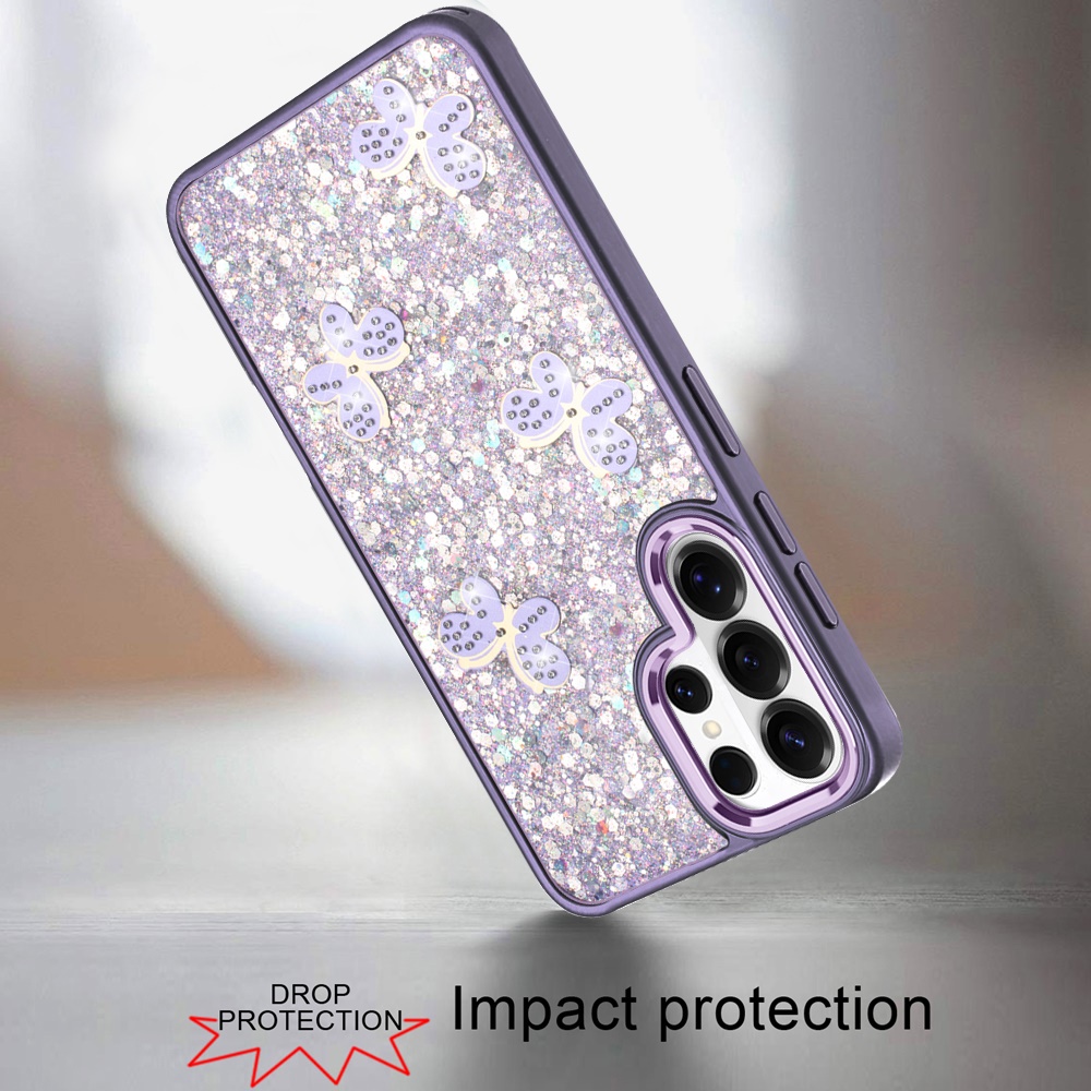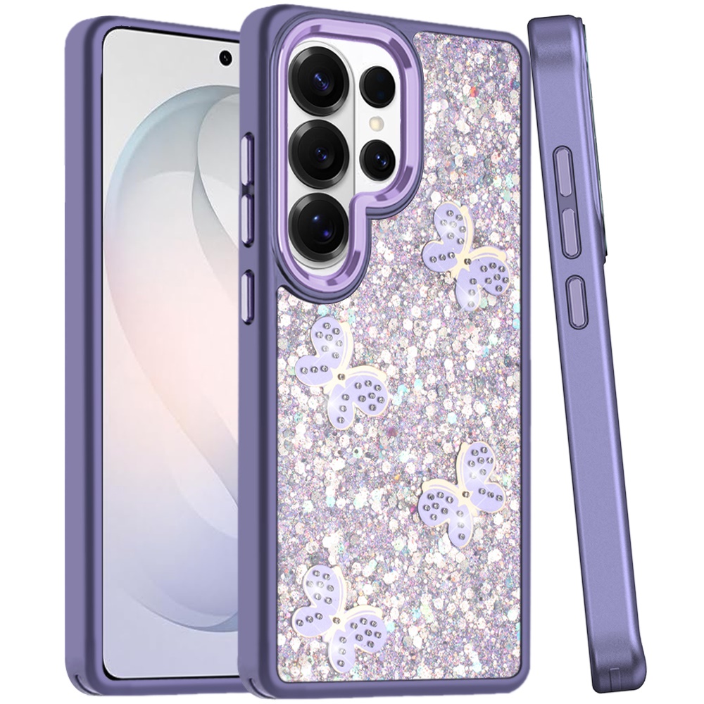 For Samsung s26 Ultra Cute Butterfly Ornaments Diamonds Shimmer Matching Metallic HQ Hybrid - Dark Purple