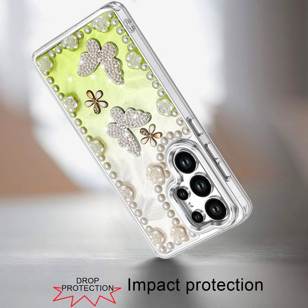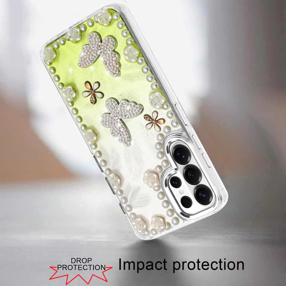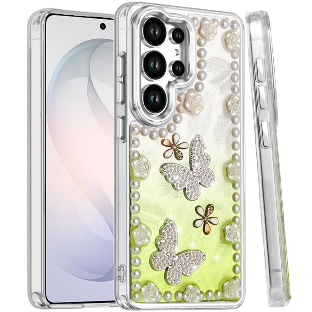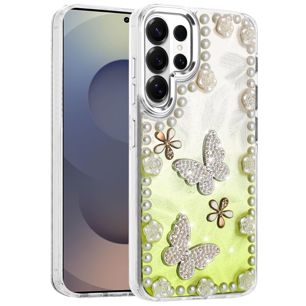 For Samsung s26 Ultra Pearls Epoxy Glitter Ornaments Design Chrome Edged Case - 1