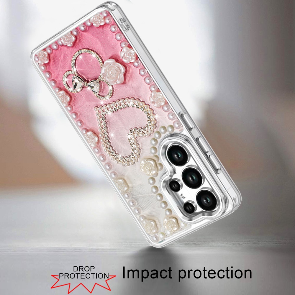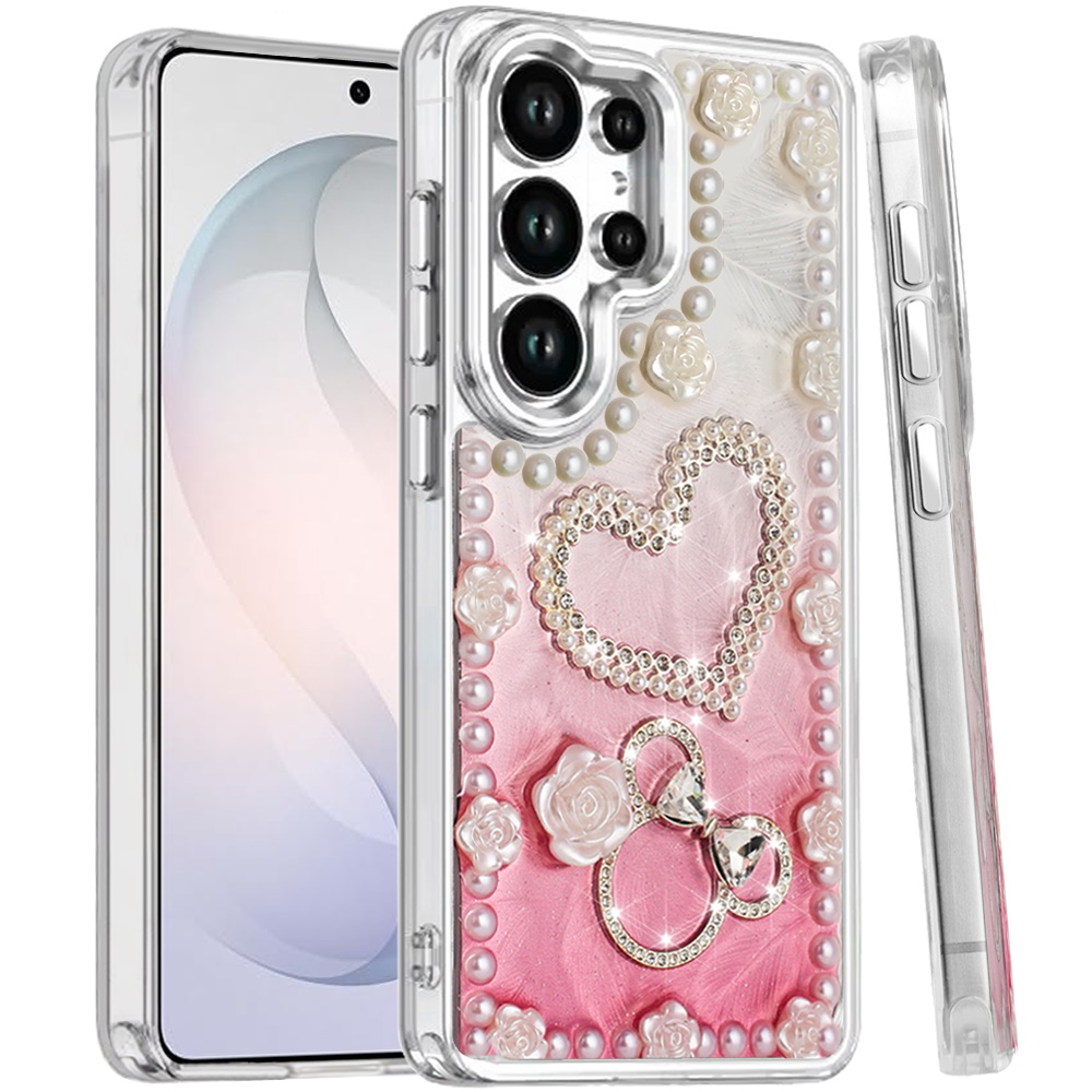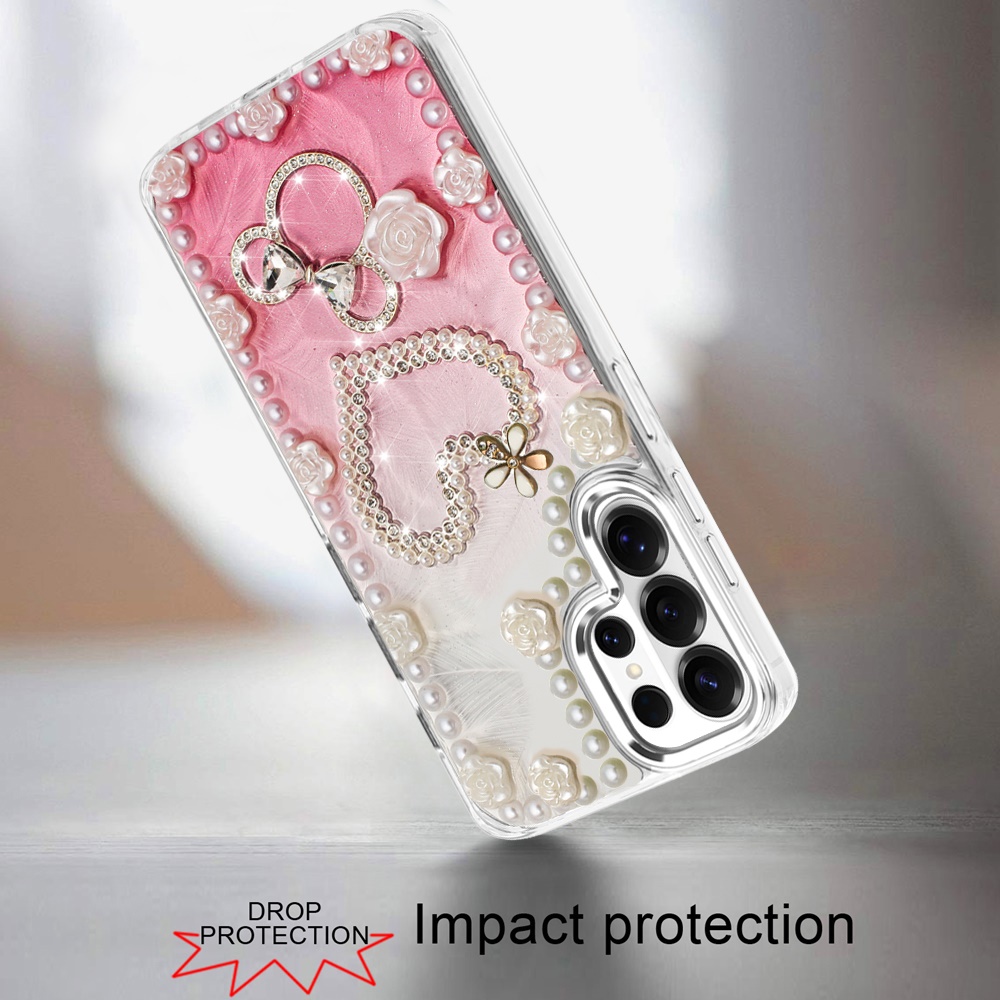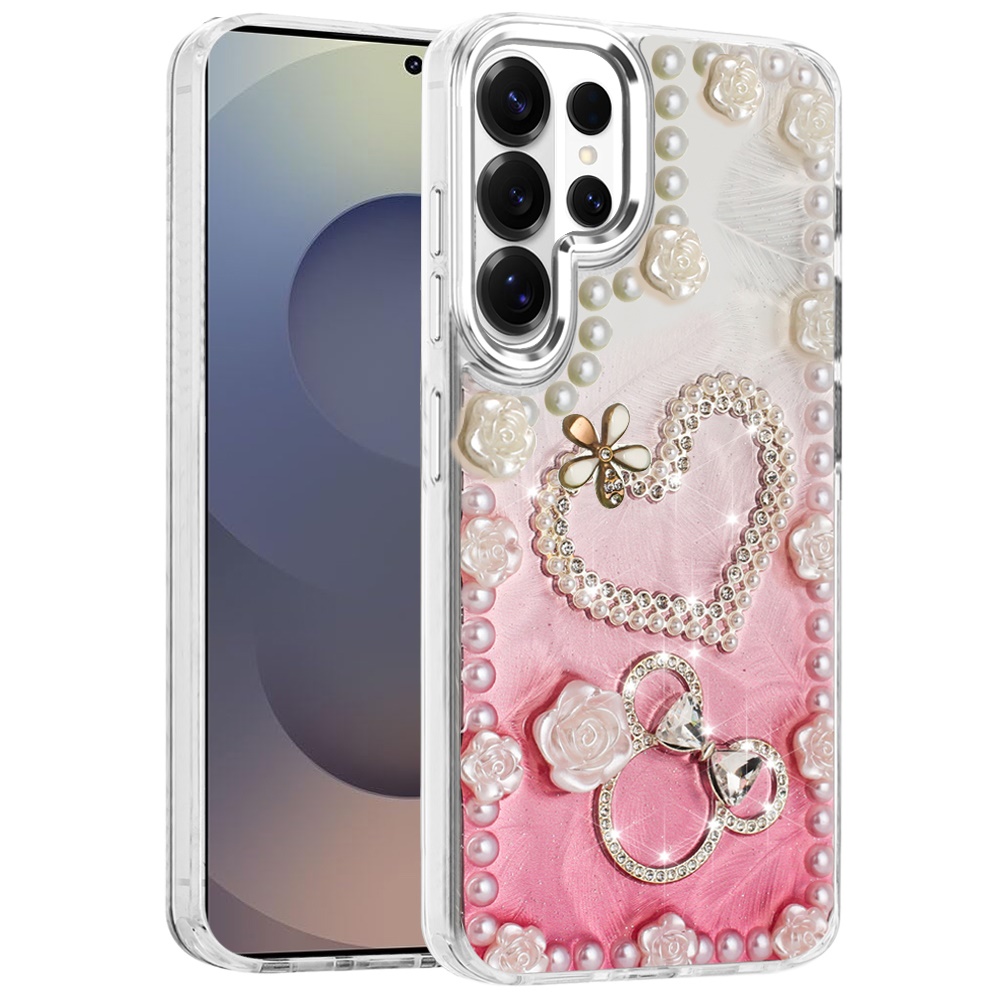 For Samsung s26 Ultra Pearls Epoxy Glitter Ornaments Design Chrome Edged Case - 10