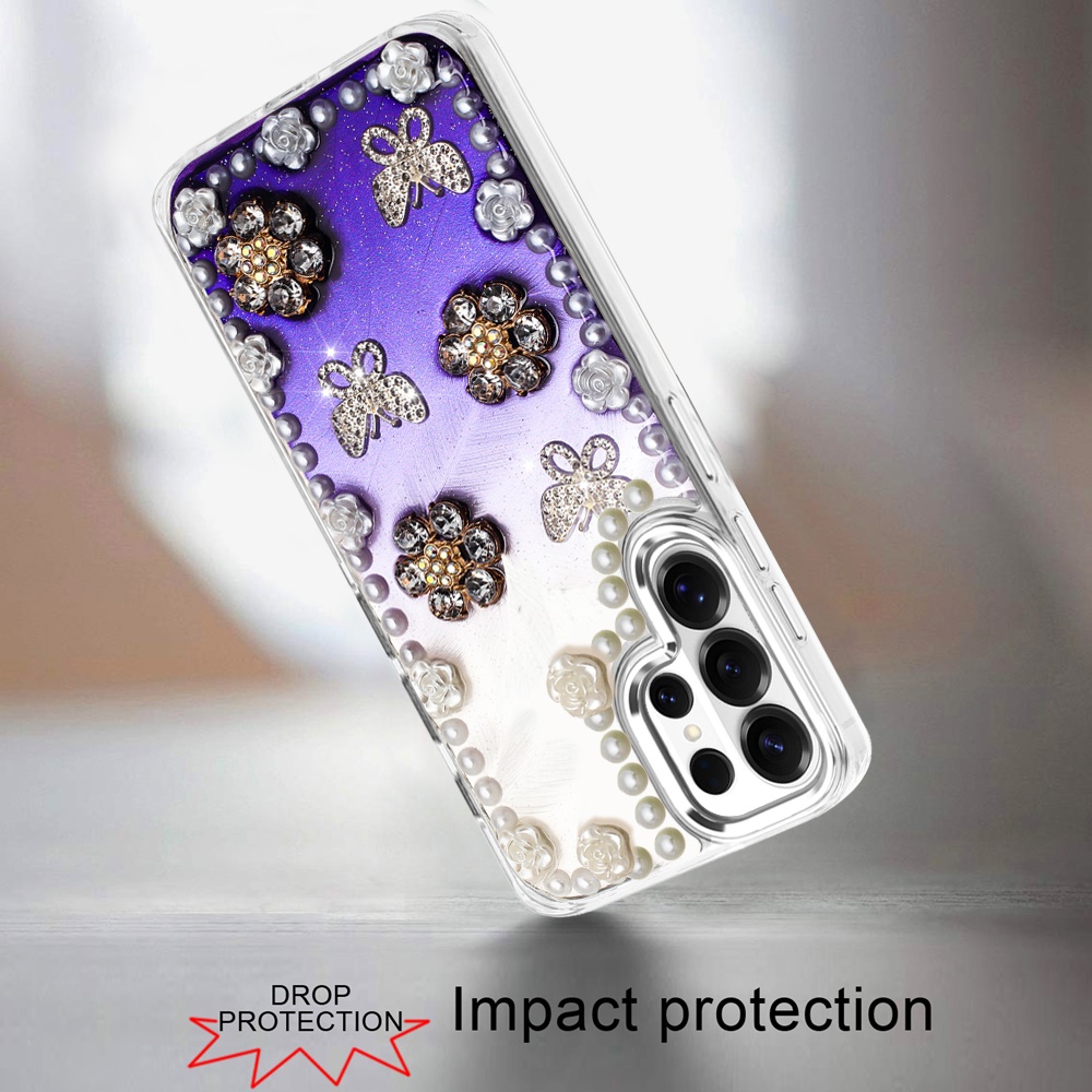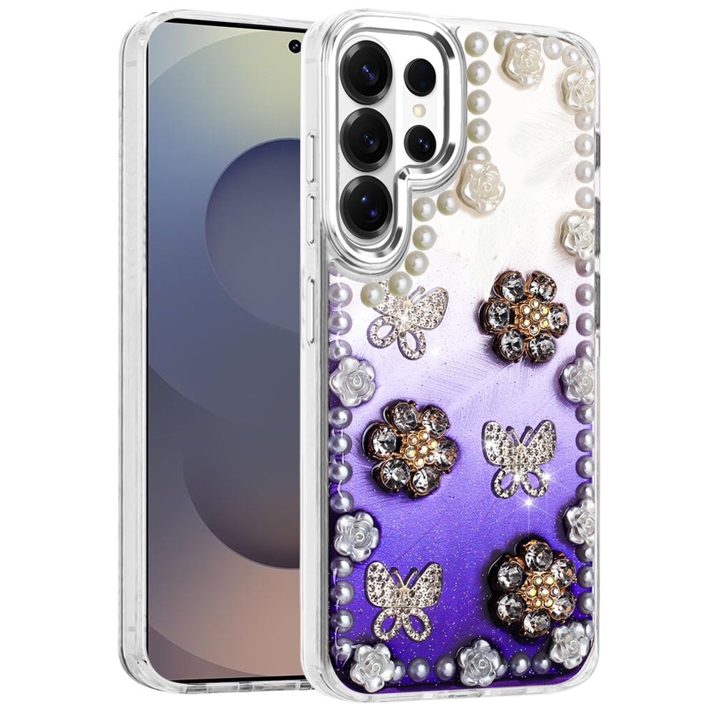 For Samsung s26 Ultra Pearls Epoxy Glitter Ornaments Design Chrome Edged Case - 3