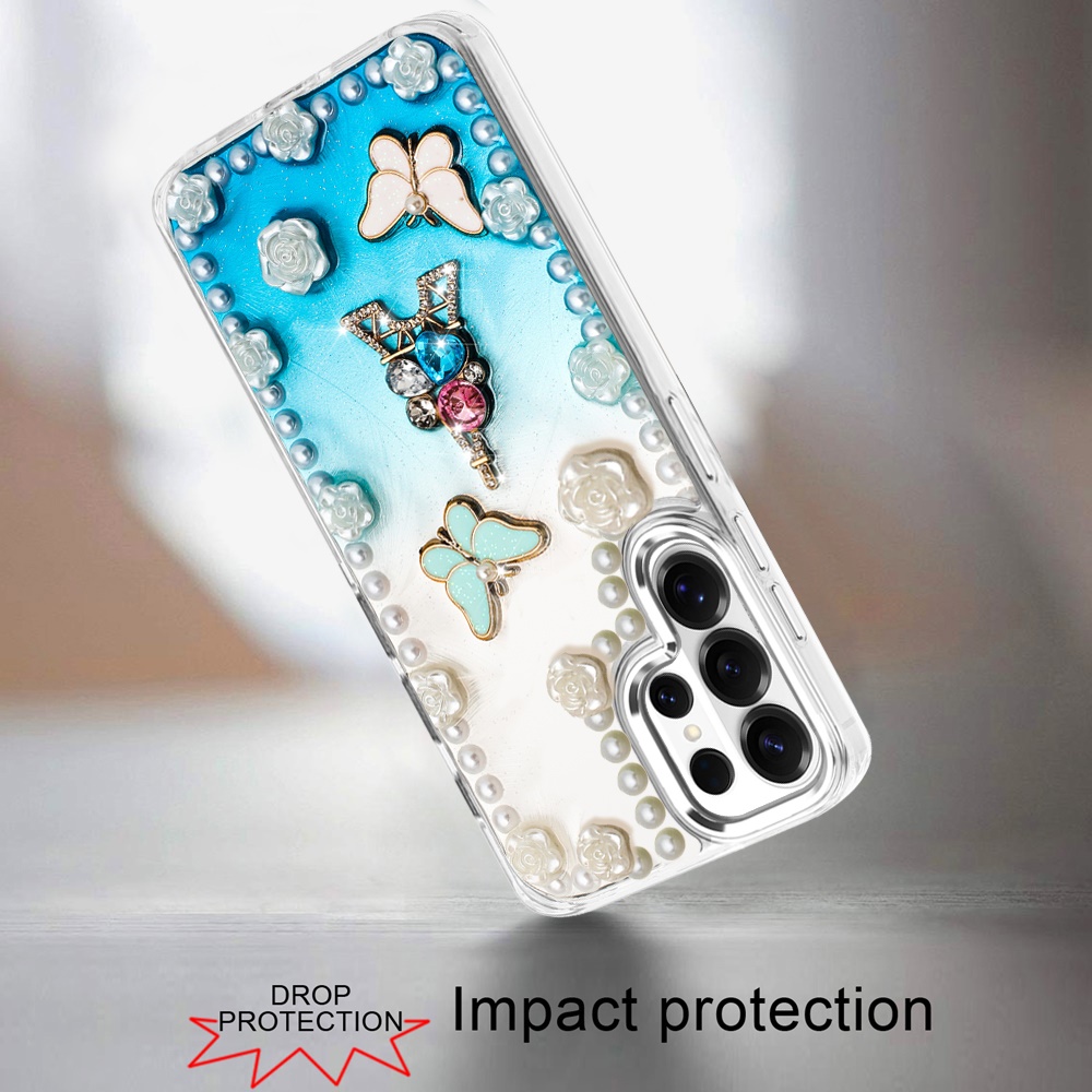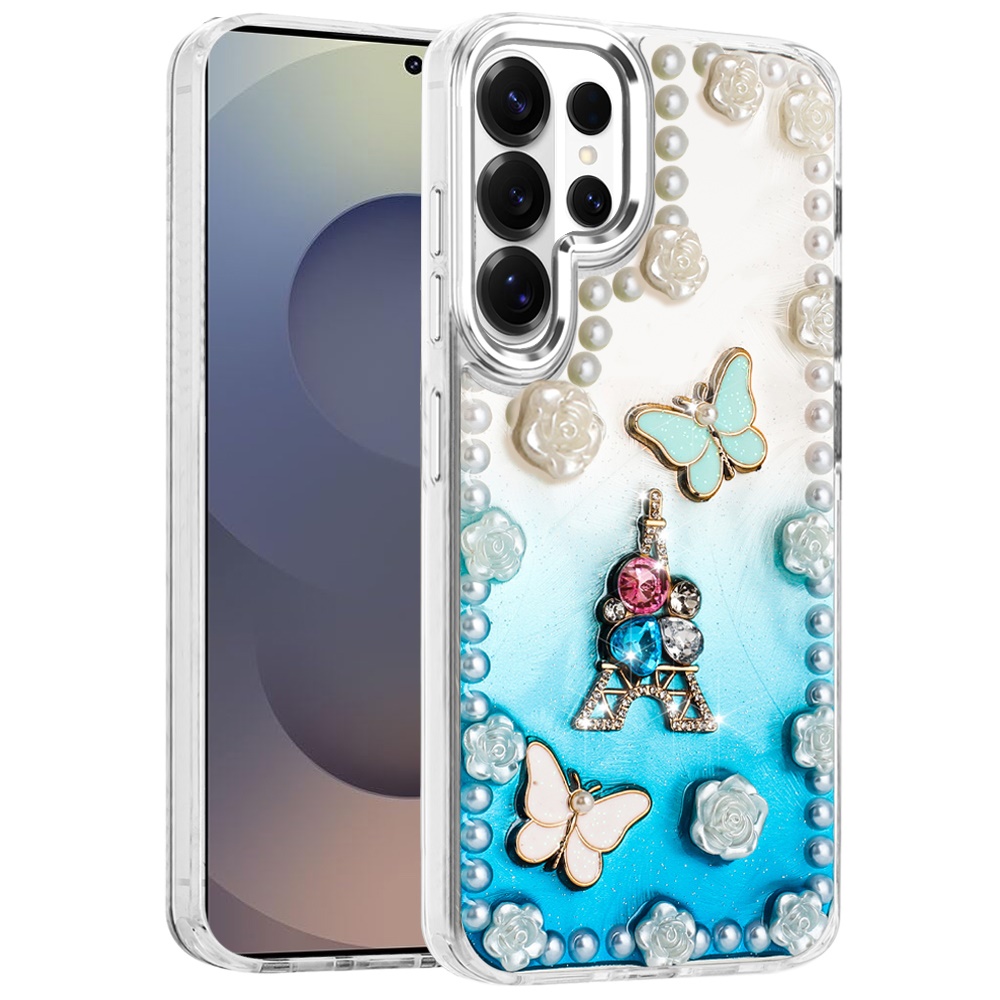 For Samsung s26 Ultra Pearls Epoxy Glitter Ornaments Design Chrome Edged Case - 4