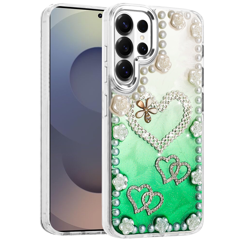 For Samsung s26 Ultra Pearls Epoxy Glitter Ornaments Design Chrome Edged Case - 5