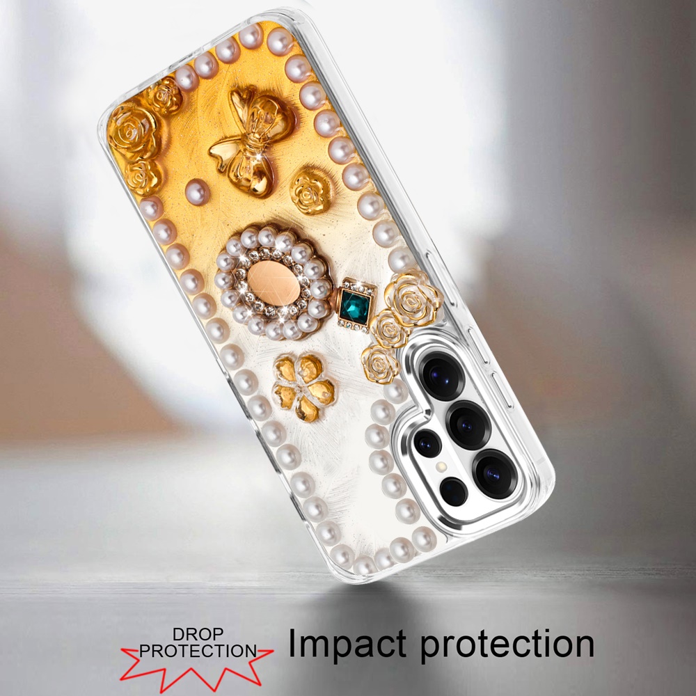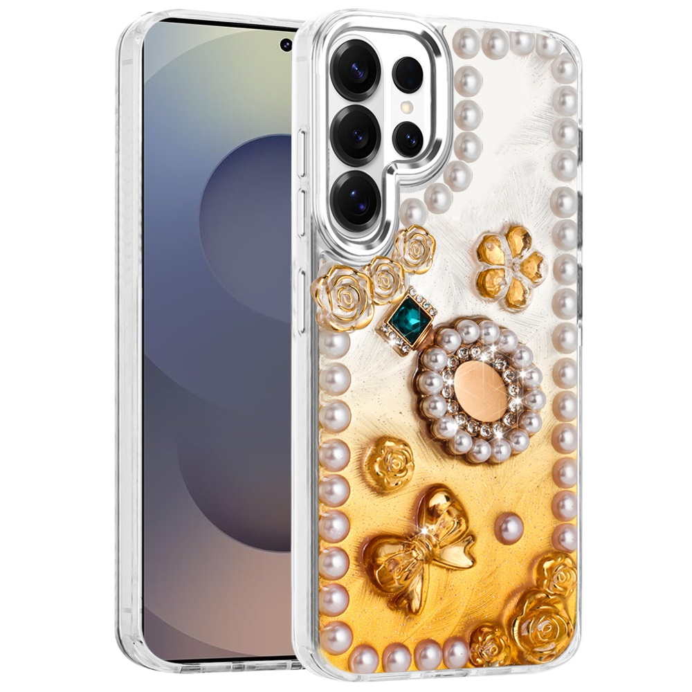 For Samsung s26 Ultra Pearls Epoxy Glitter Ornaments Design Chrome Edged Case - 8