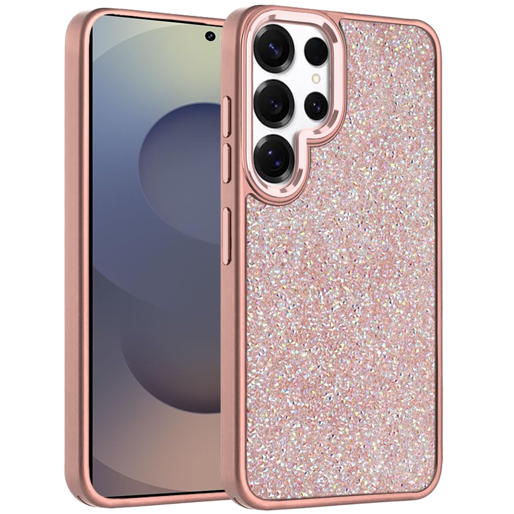 For Samsung s26 Ultra Crystal Glass Diamond with Metallic Buttons and Edges Hybrid Case - Rose Gold