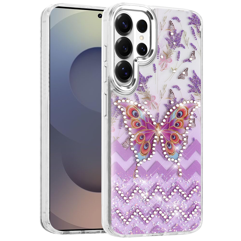 For Samsung s26 Ultra Resin Epoxy Design Diamond Metal Edged Hybrid Case - B