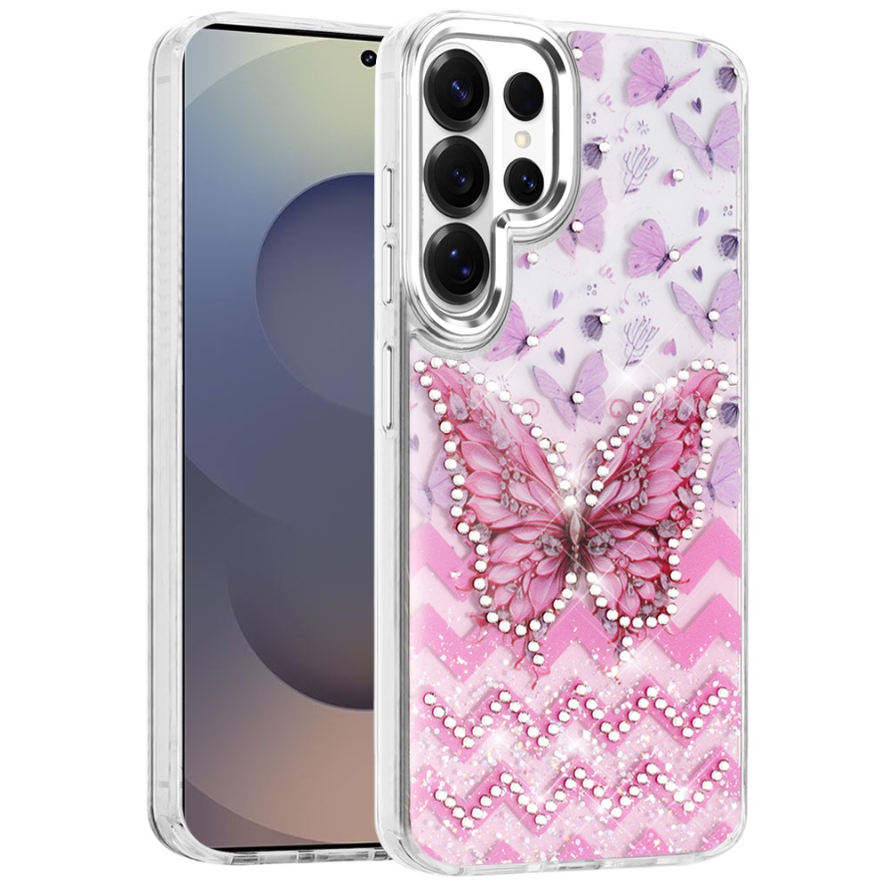 For Samsung s26 Ultra Resin Epoxy Design Diamond Metal Edged Hybrid Case - C