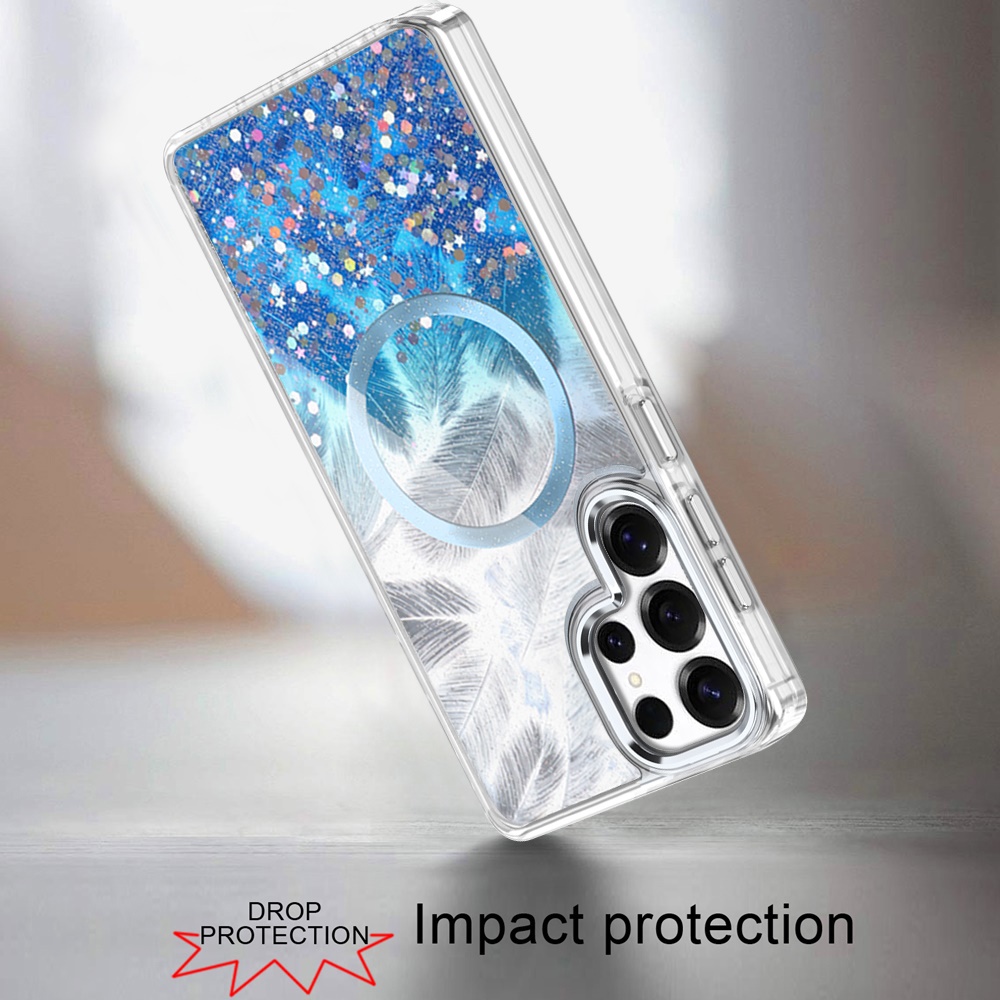 For Samsung s26 Ultra Epoxy Glitter Shimmer [Magnetic Circle] Hybrid Case - Dark Blue