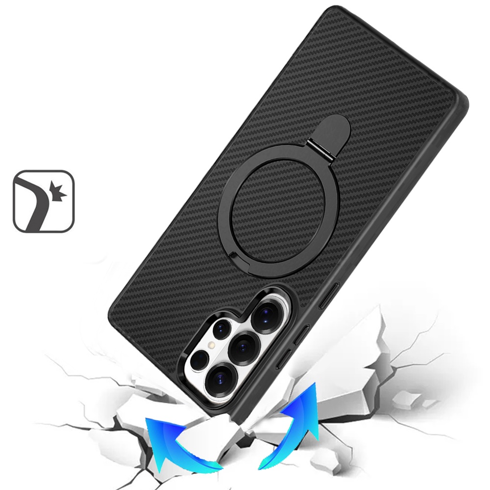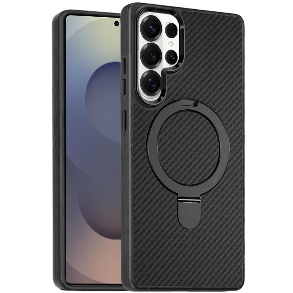 For Samsung s26 Ultra Carbon Design [Magnetic Circle] with Ring Stand Hybrid Case - Black