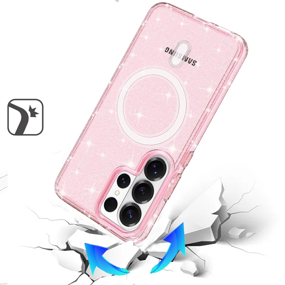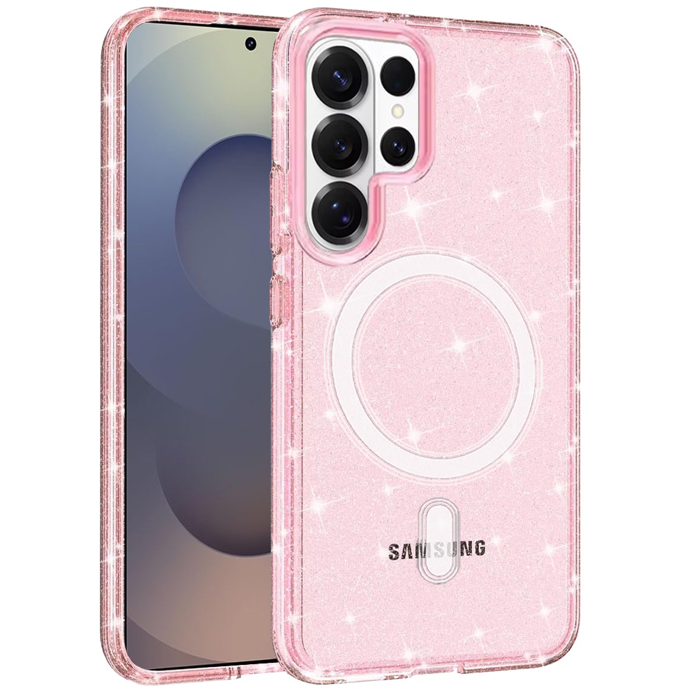 For Samsung s26 Ultra Glitter Ultra [Magnetic Circle] Thick 3mm Transparent Hybrid - Pink