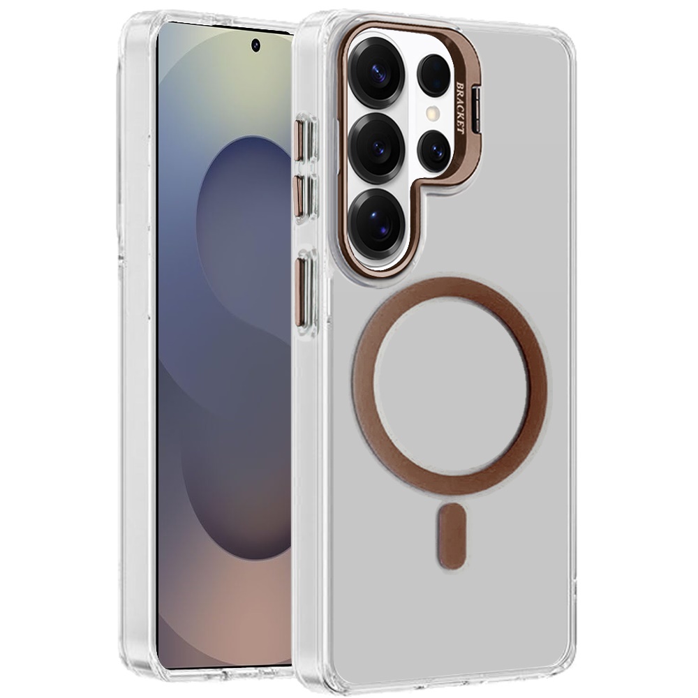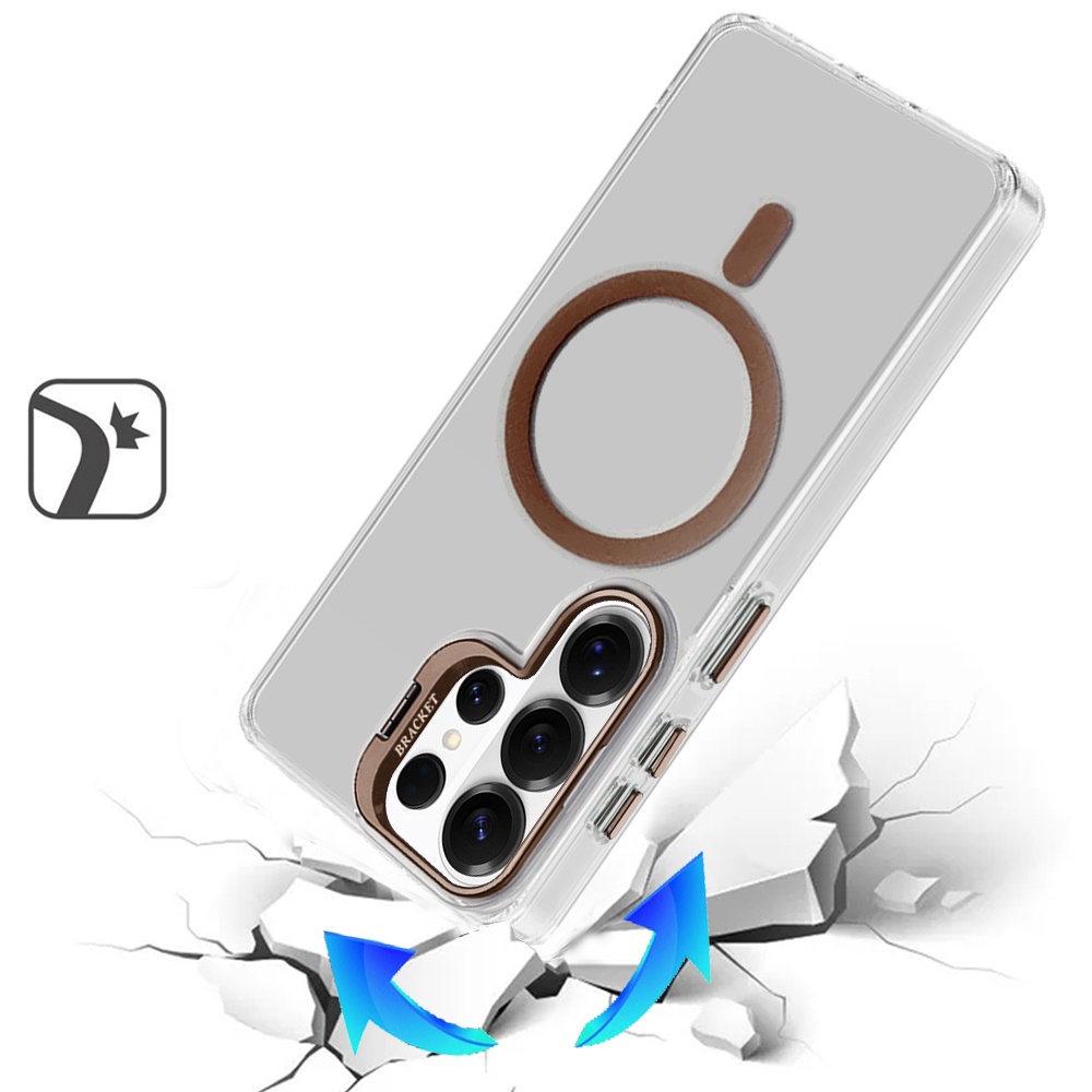 For Samsung s26 Ultra Transparent HQ Hybrid with Metallic Camera Stand Magnetic Ring Case - Desert Gold