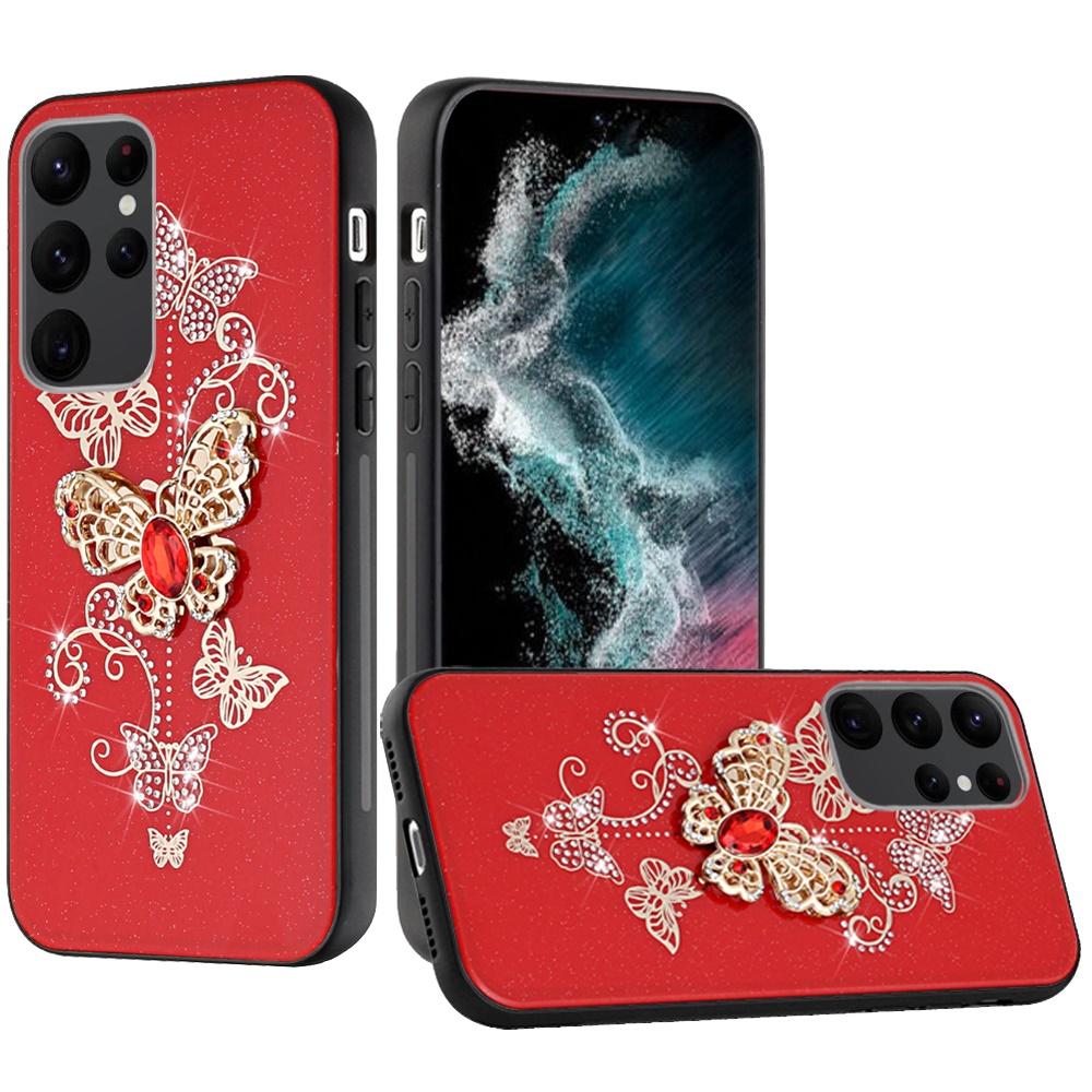 For Samsung A15 5G SPLENDID Diamond Glitter Ornaments Engraving Case Cover - Garden Butterflies Red
