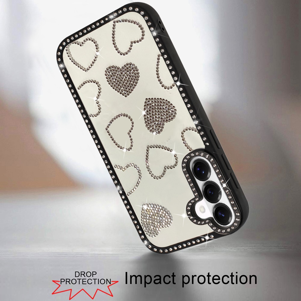 For Samsung s26 Spread Love Glitter Shimmer Diamond Edged Hybrid Case - Black