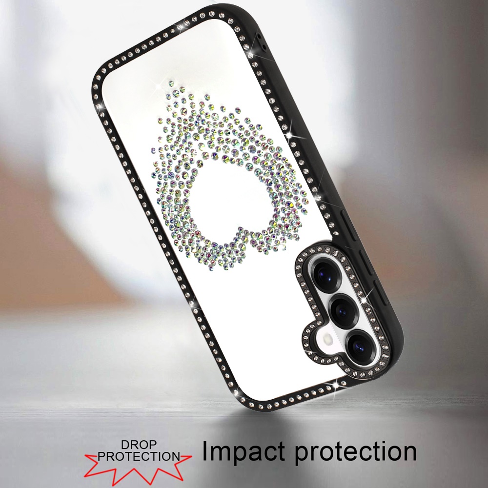 For Samsung s26 Beautiful ANGEL Hearts Glitter Shimmer Diamond Edged Hybrid Case - Black