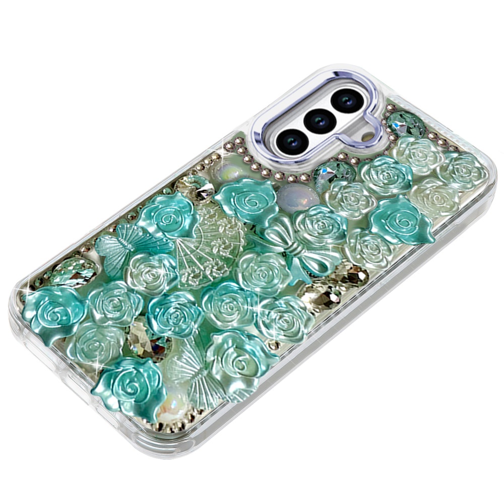 For Samsung s26 Muti-Color Floral Bling Stones Ornaments Case - Blue