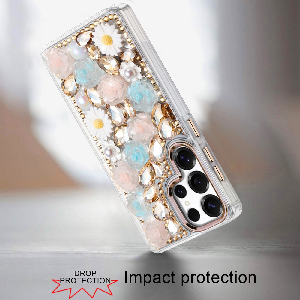 For Samsung s26 Ultra Spectacular Full Bling Stones Glitter HQ Hybrid Floral Series - Gold