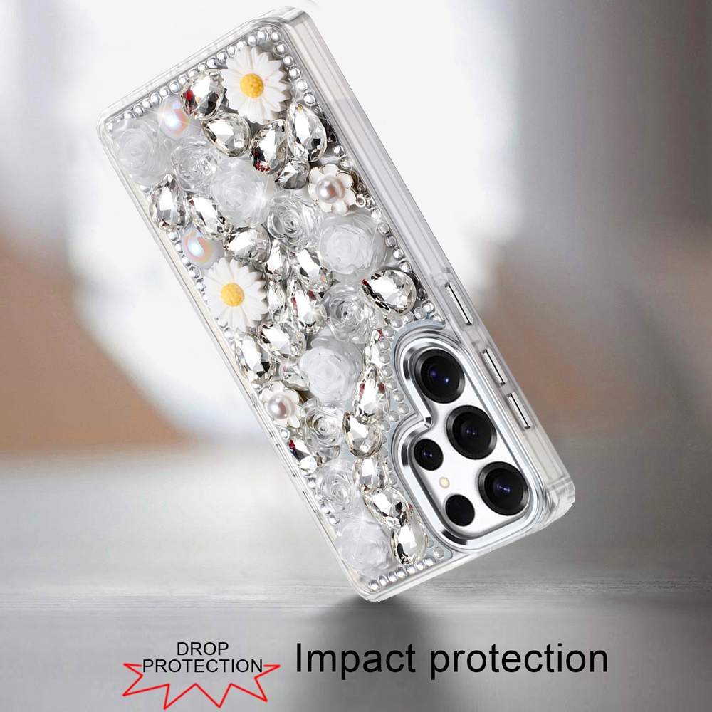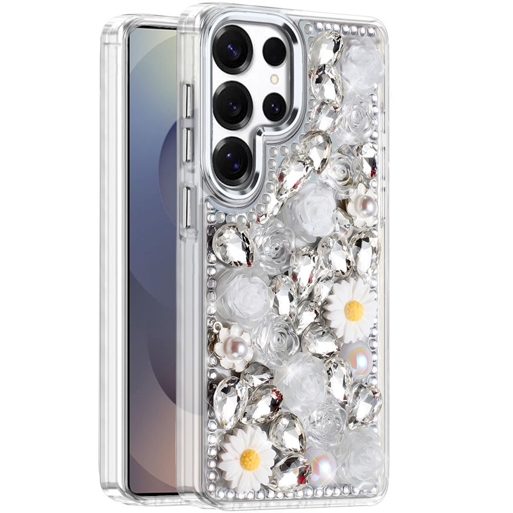 For Samsung s26 Ultra Spectacular Full Bling Stones Glitter HQ Hybrid Floral Series - White