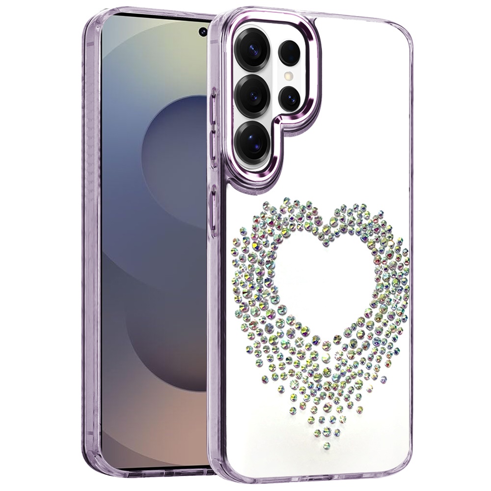 For Samsung s26 Ultra Angel Hearts Bling Shimmer Colorful Glitter Chrome Edged Hybrid Case - Purple