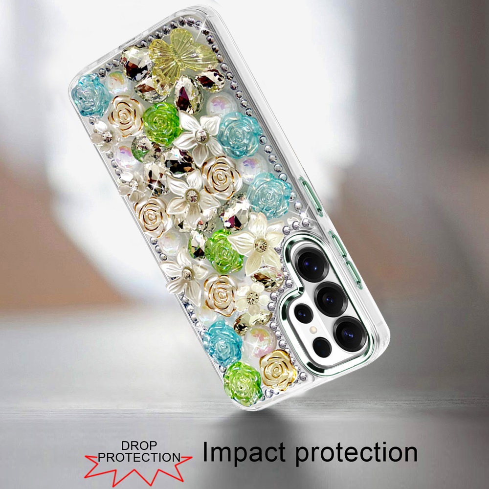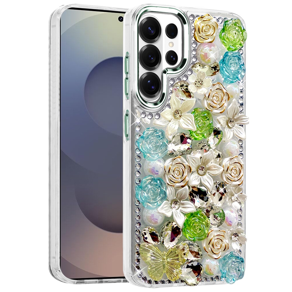 For Samsung s26 Ultra Muti-Color Rose Bling Stones Ornaments Case - Green