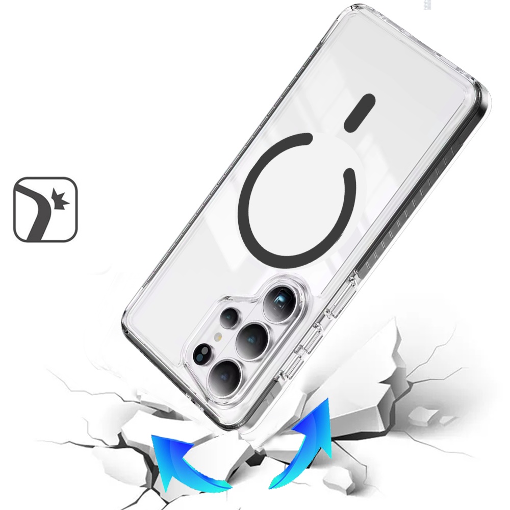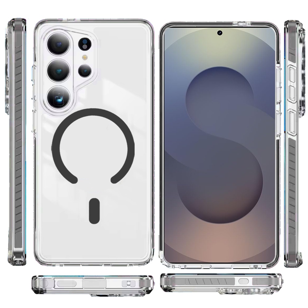 For Samsung s26 Ultra Thick Transparent Colored Edged Magnetic Hybrid Case - Black