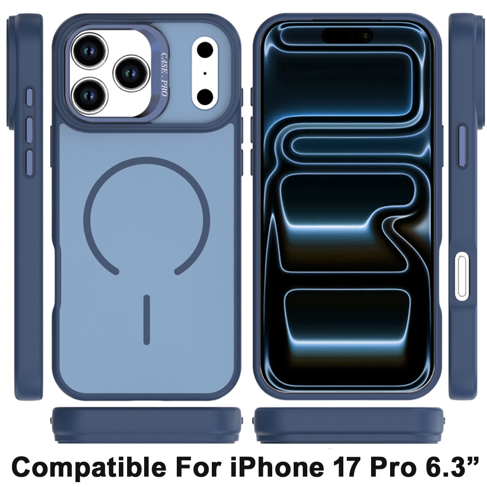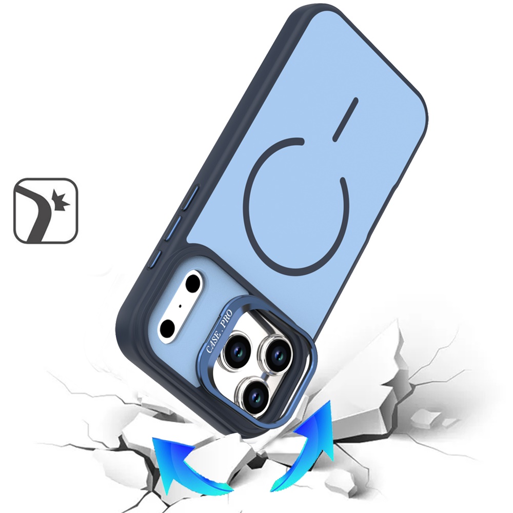 For iPhone 17 Pro Premium Matte Magnetic Metal Camera Stand Hybrid Case - Navy Blue