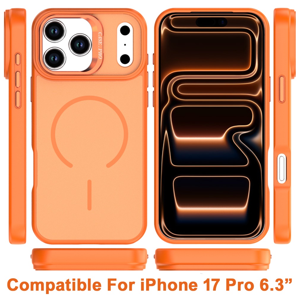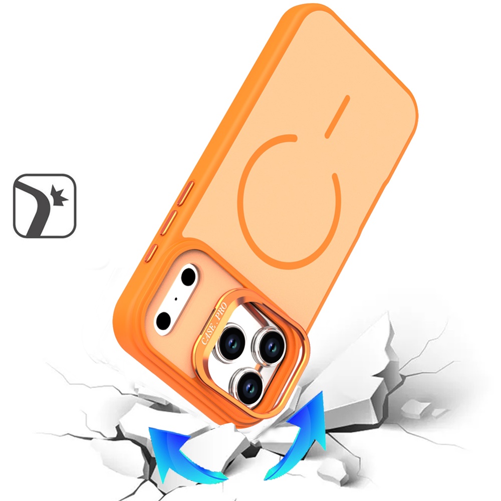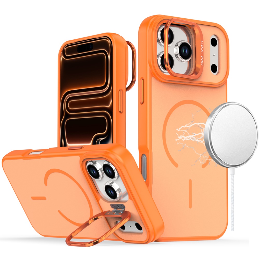 For iPhone 17 Pro Premium Matte Magnetic Metal Camera Stand Hybrid Case - Cosmic Orange