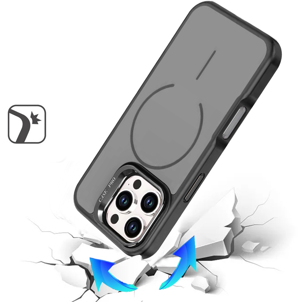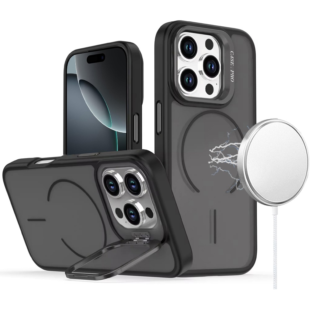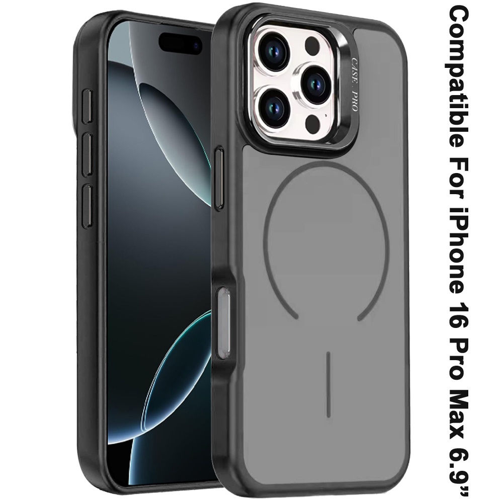 For iPhone 16 Pro Max 6.9 Premium Matte Magnetic Metal Camera Stand Hybrid Case - Black
