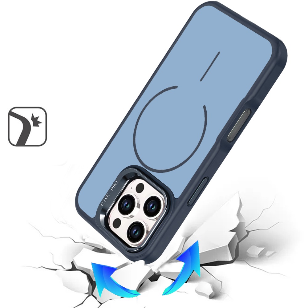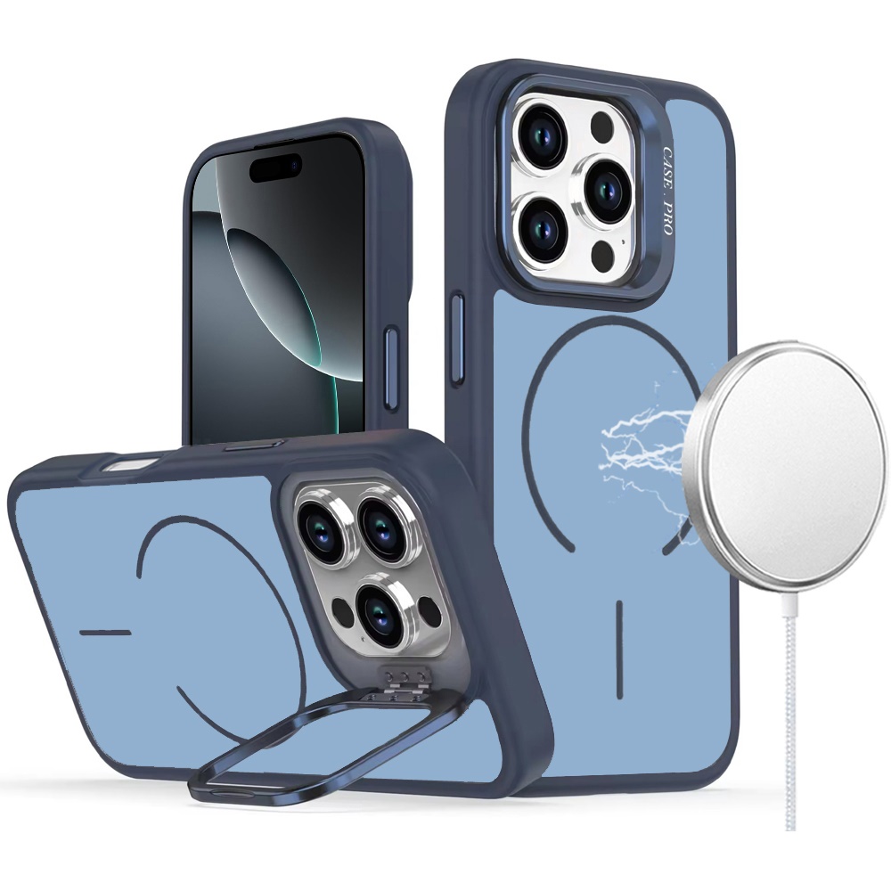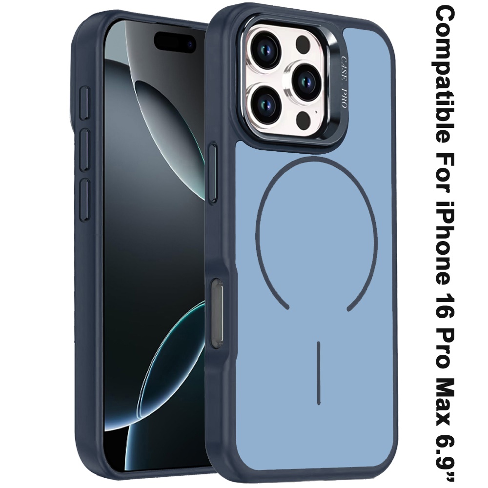 For iPhone 16 Pro Max 6.9 Premium Matte Magnetic Metal Camera Stand Hybrid Case - Navy Blue