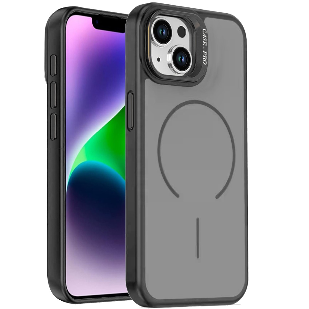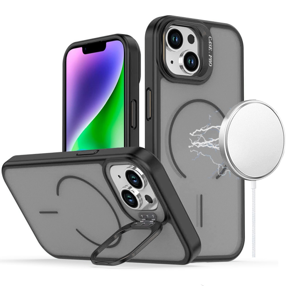 For iPhone 13/14 Magnetic Matte Camera Metallic Stand Hybrid Case - Black