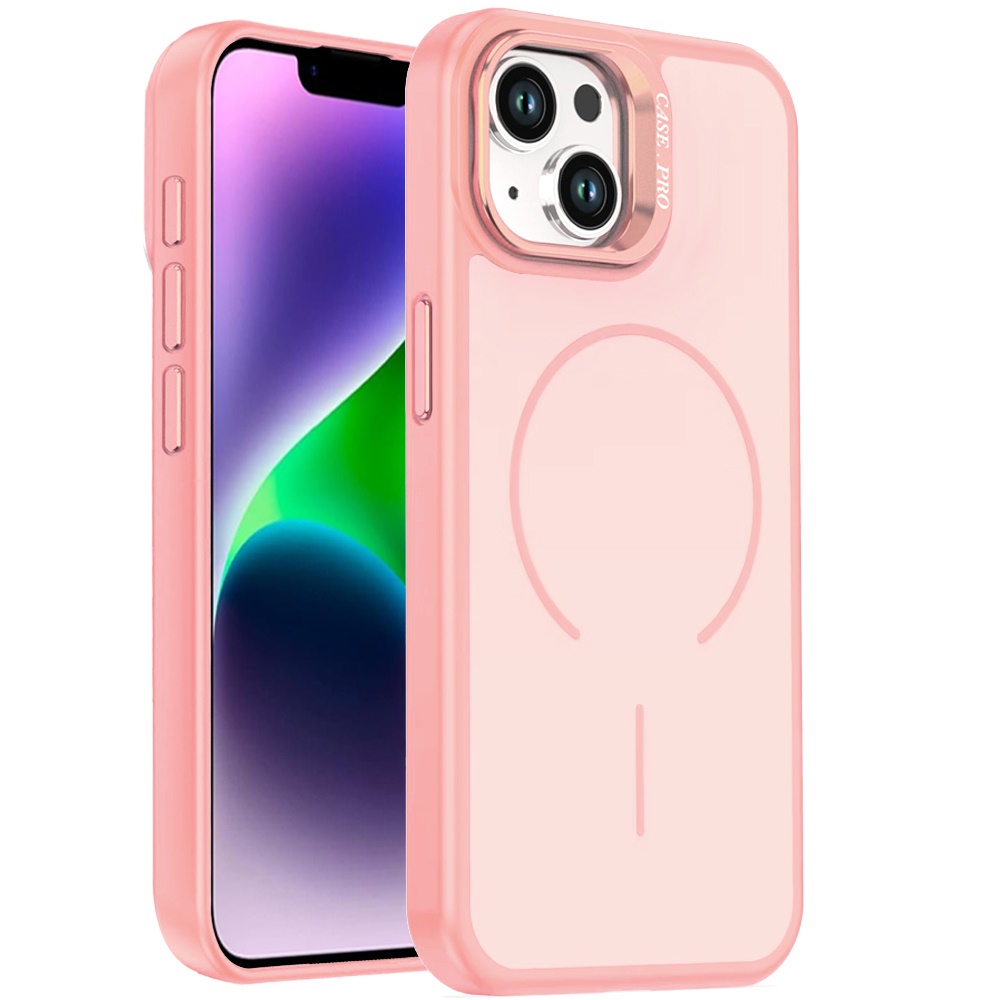 For iPhone 13/14 Magnetic Matte Camera Metallic Stand Hybrid Case - Pink